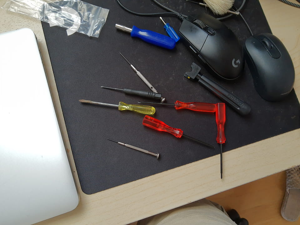Ich musste nach einer Weile mit den verfügberen Geräten ohne genug Hebel aufgeben und bei ebay einen passenden Schraubenzieher nachbestellen.