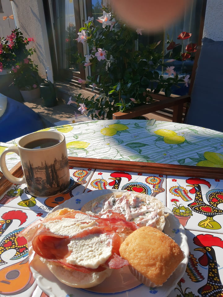 Chillen auf der warmen Terrasse. Ich ließ es wieder mal ruhig angehen, hatte dann aber gegen Abend mal Motivation, die 6 Cams für die Fitness-Aufnahmen auch mal zu testen.