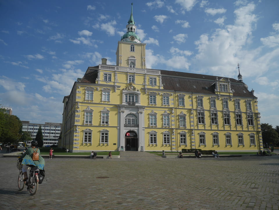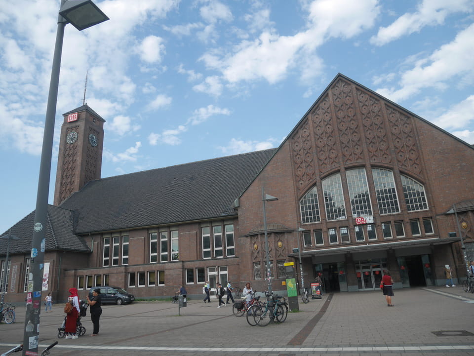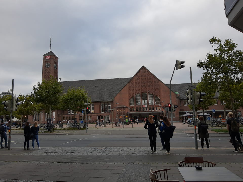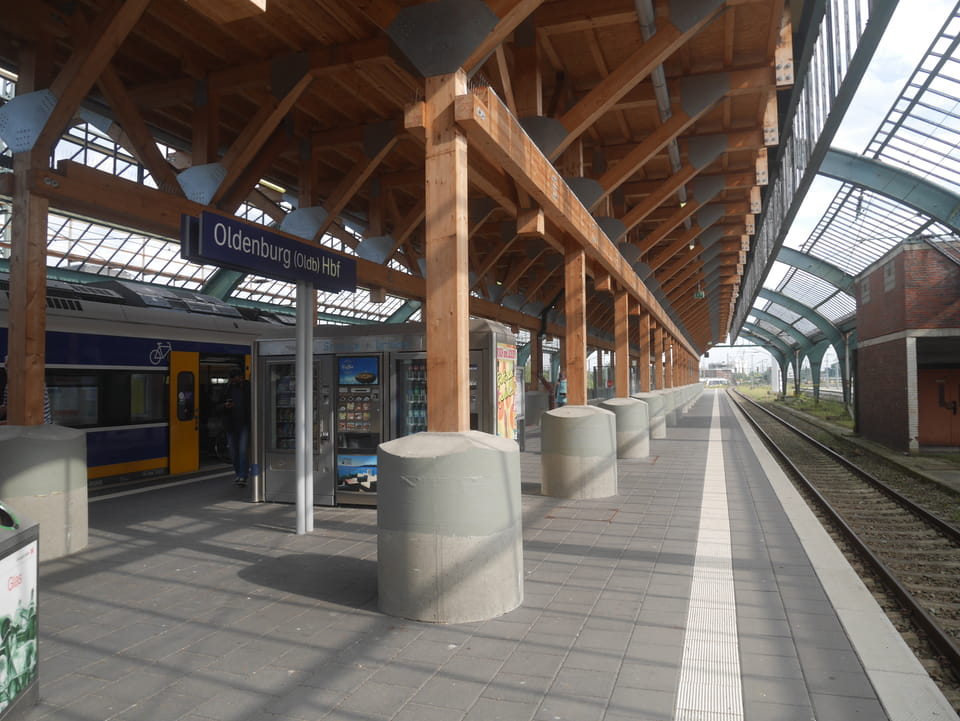Halb fit und etwas zu spät draußen, joggte ich zum Bahnhof, um den einen Zug um 14:15 nach Oldenburg zu schaffen. Das klappte doch ganz gut. In kaum 10′ vom Hotelzimmer zum Bahnsteig.