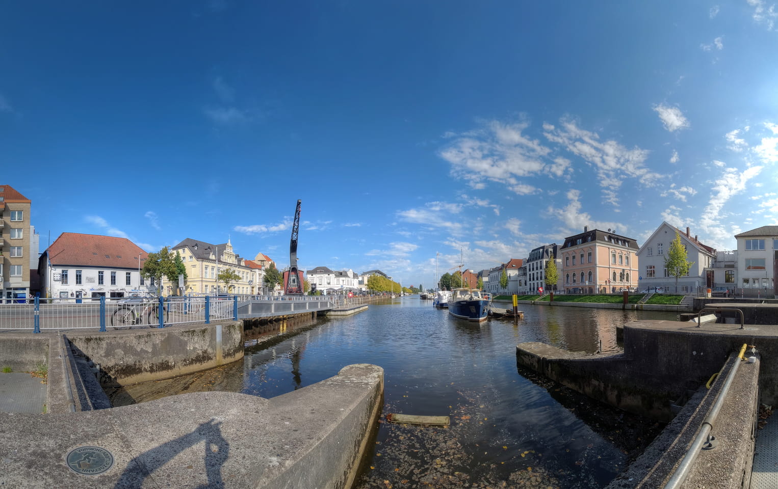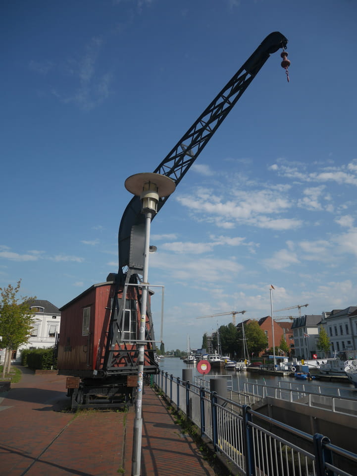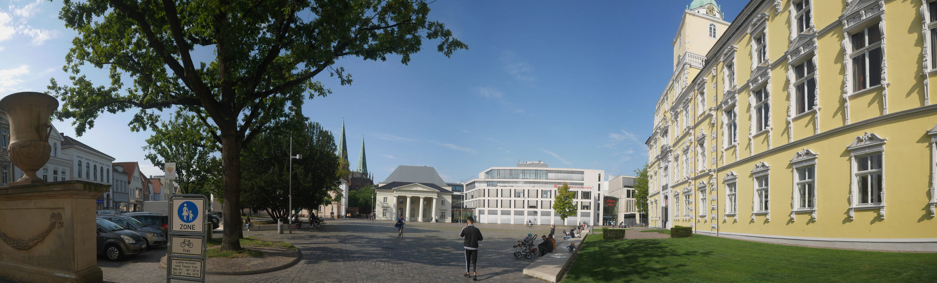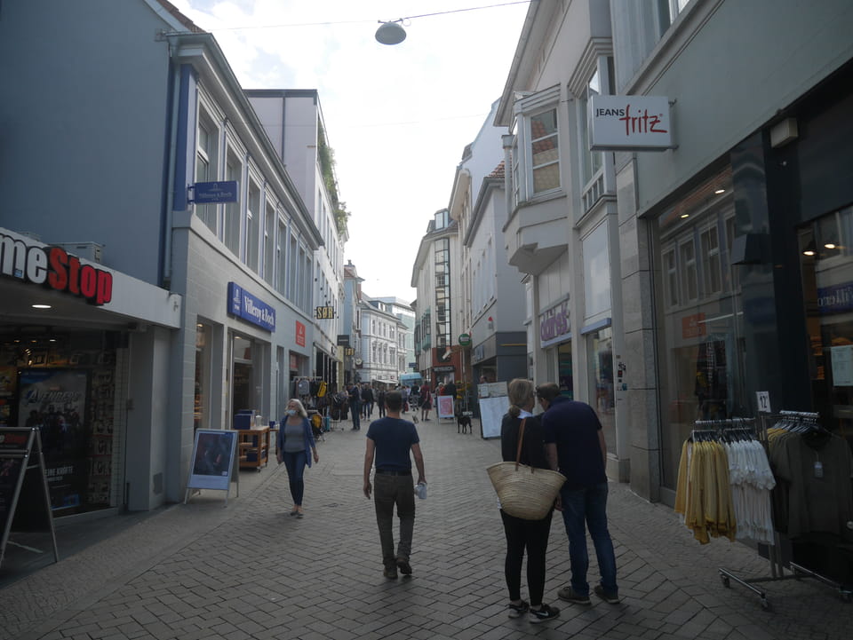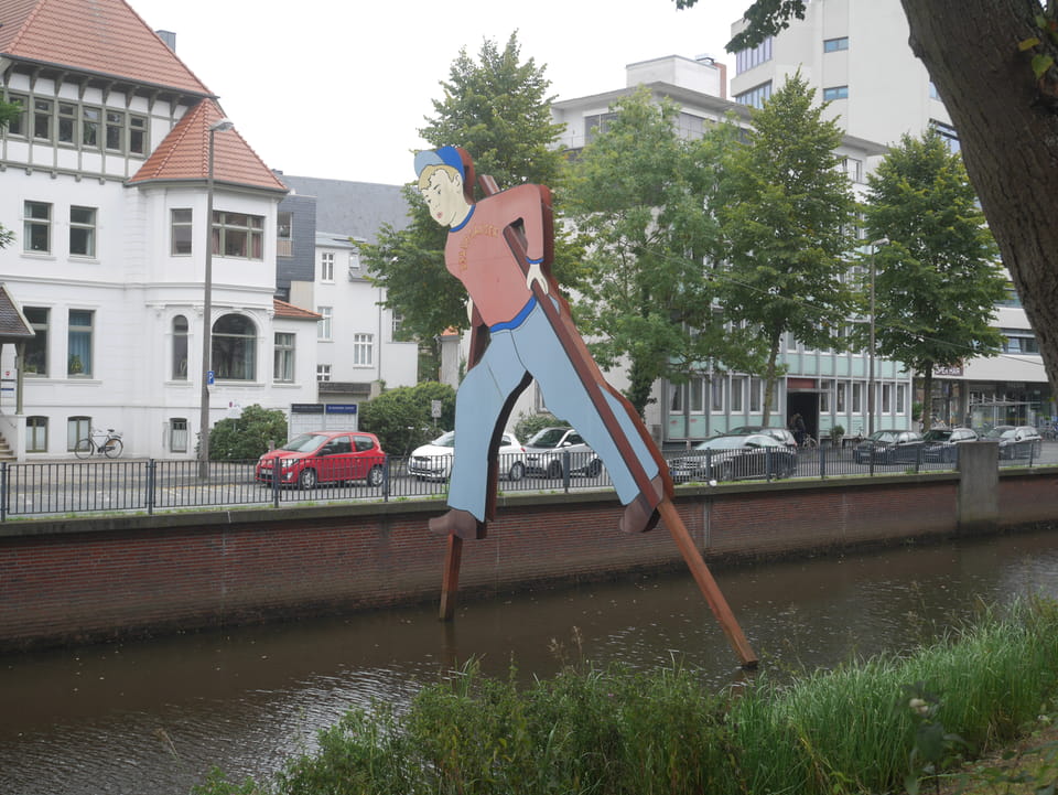 Wenig später war ich in Oldenburg und startete gleich am Bahnhof das erste Video. Nach der Bahnhofsgegend wurde es ganz nett. Es sah leicht nach Niederlande aus, so mit einem Kanal und Booten. Dann eine typisch deutsche Innenstadt mit Ladenstraßen. Das Wetter war super für September. Nach einer halben Stunde machte ich Schluss und saß eine Weil bei einem Latte Macciato in der Old Brauerei am „Hafen“. Der junge Kellner dutzte mich, was ich in meinem Alter positiv sehe. Auch neu war ein QR-Code ein und auscheck-System als Sticker am Tisch, was ich nutzte. Abkassieren dauerte ewig, sodass ich das selbst in die Hand nahm und zu einem Kellner ging.
