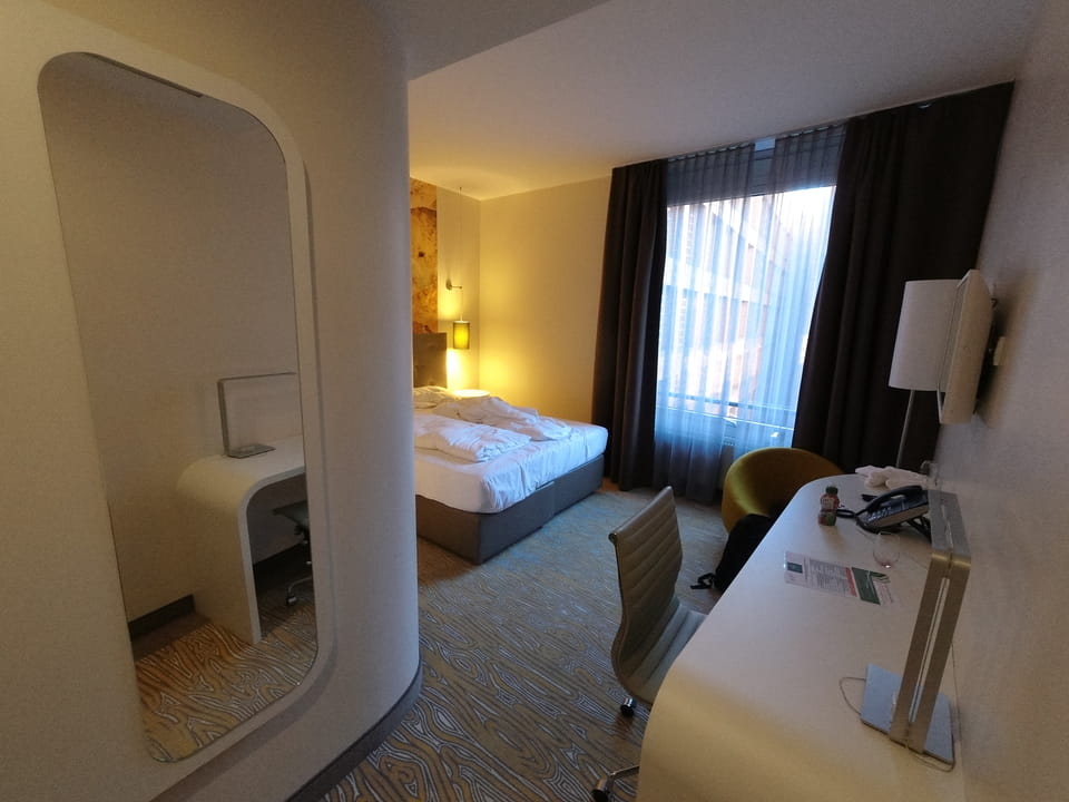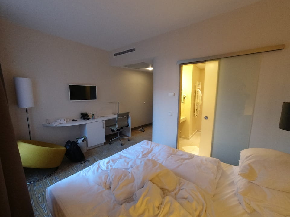 Eingecheckt für 4 Tage, werden vielleicht weniger. Großes Zimmer, Badewanne, alles OK. Gut was geschafft heute.