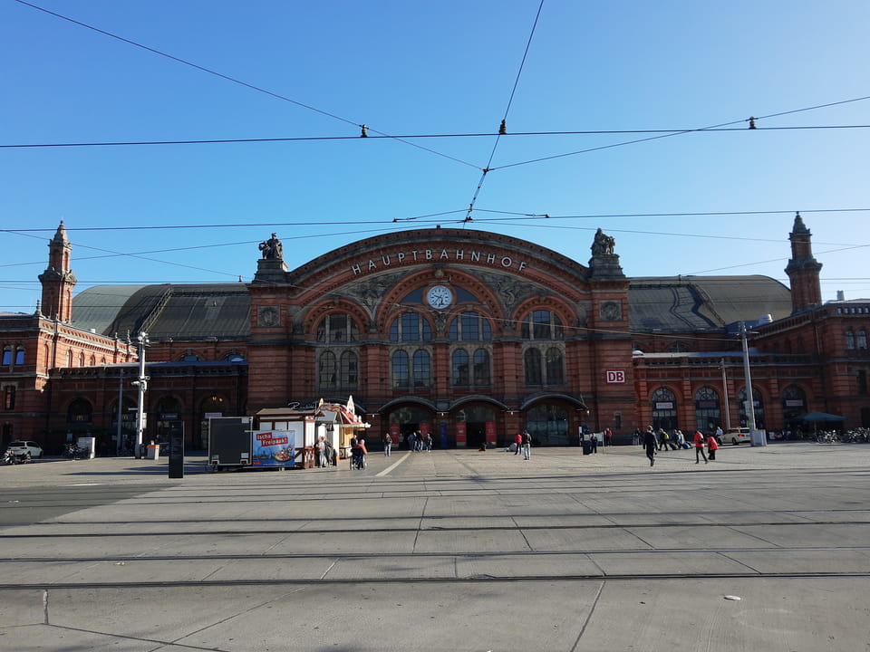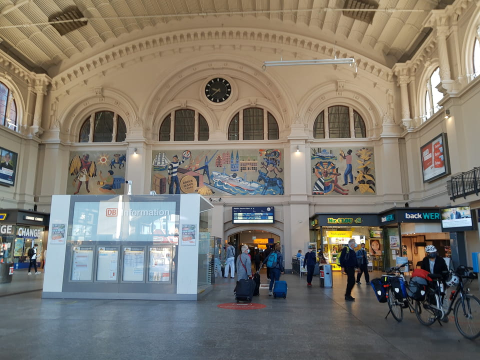 Pünktlich ausgecheckt und fast ohne Hektik zum Bremer Hauptbahnhof. Der ICE kam, musste dann aber wegen einer Weichenstörung eine Weile warten.