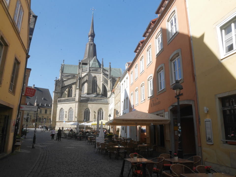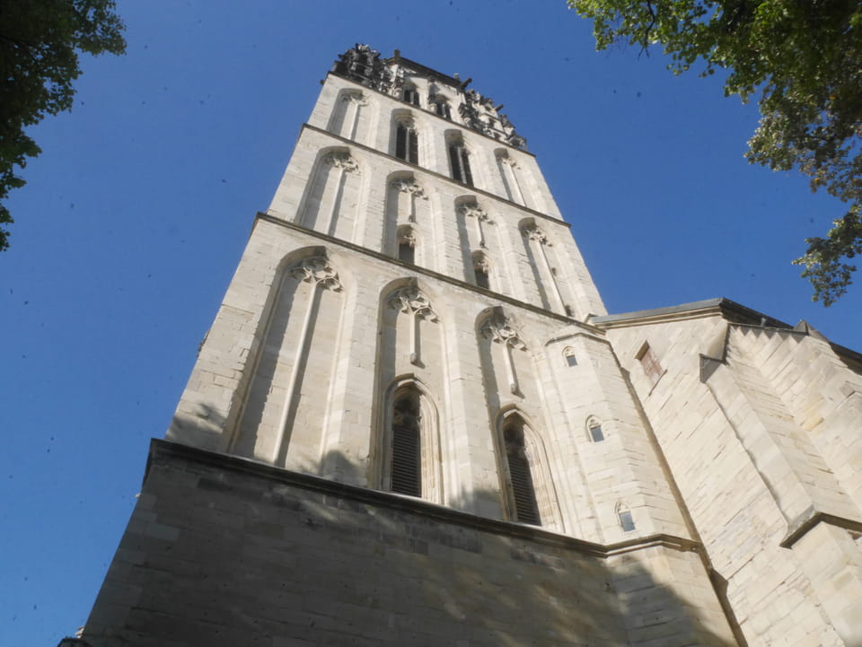 Immer noch volle Kanne Sonne und alles noch besser als in Osnabrück. Die Straße vom Bahnhof in’s Zentrum war nicht so dolle aber es wurde dann schon ganz gut. Recht volle Straßen, was wohl auch an der fünfachen Bombenräumung heute lag. Über 16.000 Leute mussten aus ihren Wohnungen. Ich spazierte und schwitzte und kam mit der Runde zurück zum Bahnhof auf 72′. Da war ich doch etwas geschafft und trank 1.5l Eistee easy.