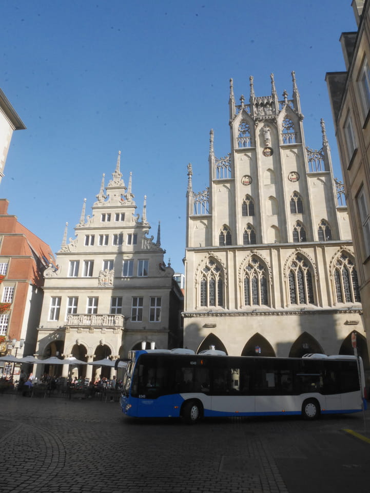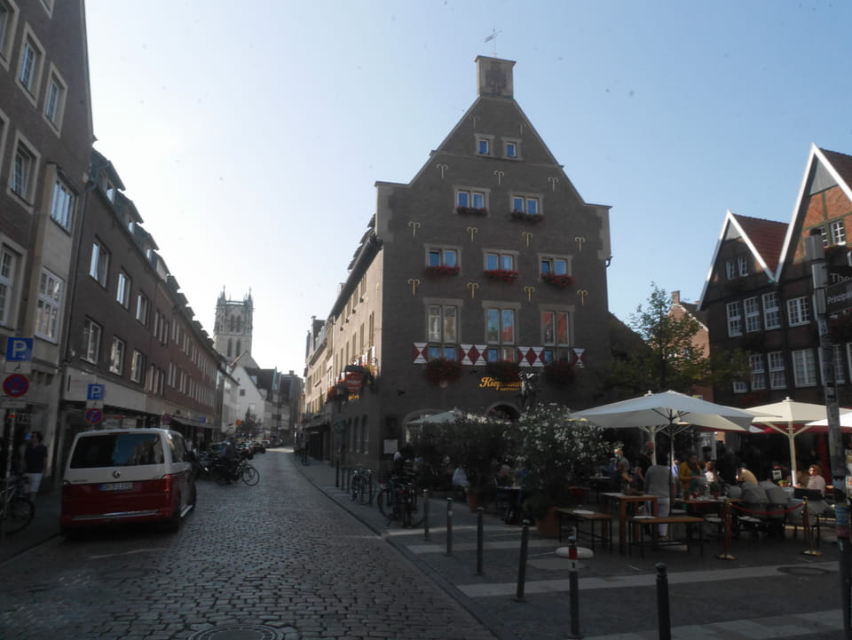Mittagessen bei Burger King, dann nach 3 Richtung Münster (€14). Keine Kontrolle und dann endlich da. Münster.