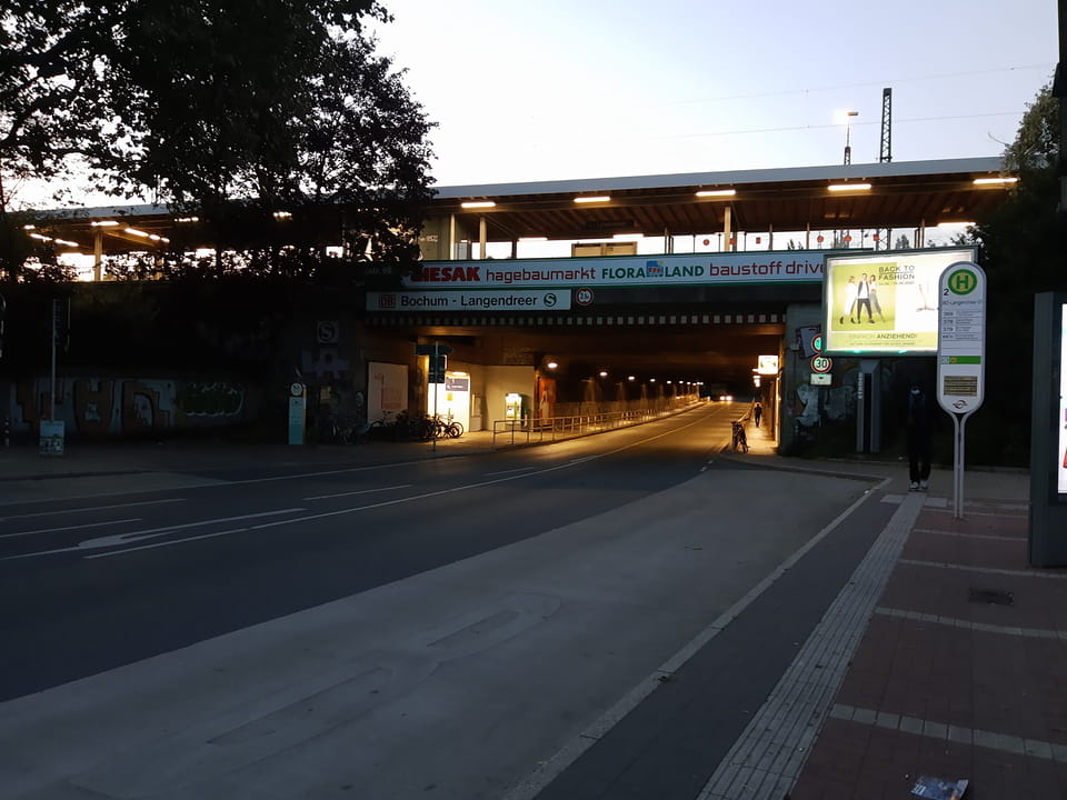 Um 18:11 startete eine Verbindung. Ich musste noch in den Pott von Münster nach Essen, dann Bochum Langendreer um den Bus zum Ruhrpark zu bekommen. Es klappte alles knapp aber gut. Vom Bus im Ruhrpark bis zum Achat war’s ein Stückel Fußweg, was ich aber auch noch schaffte.