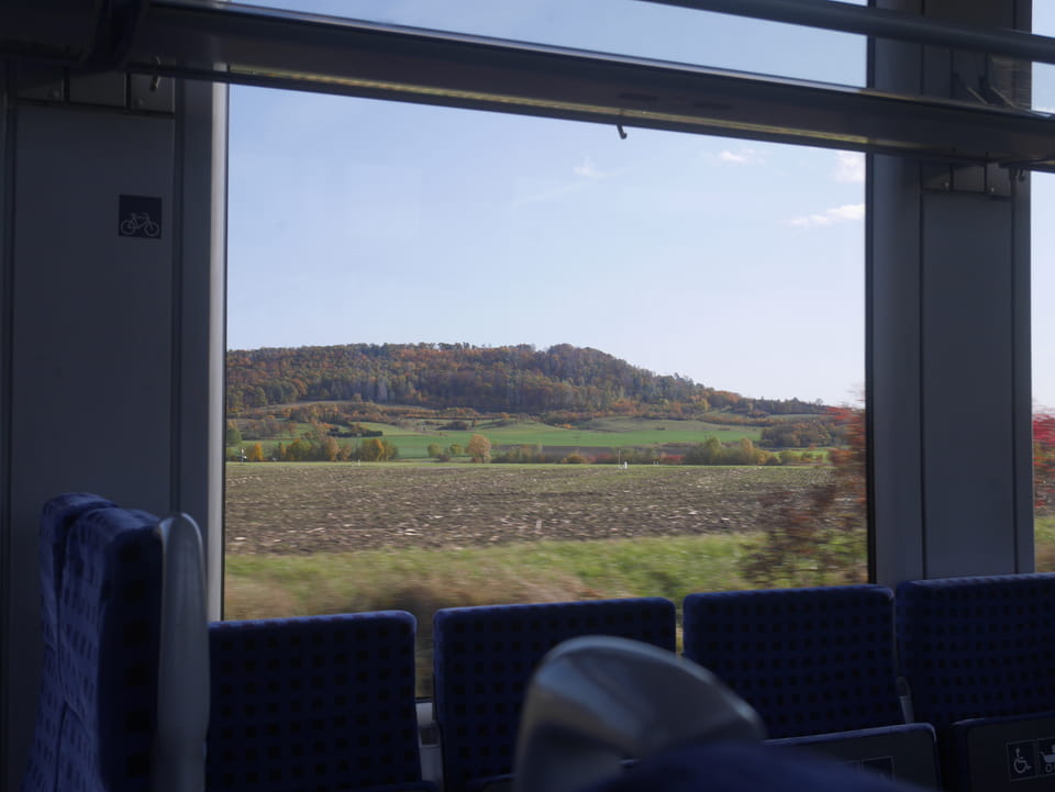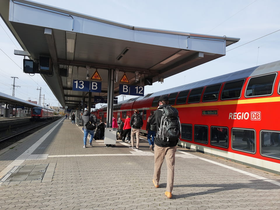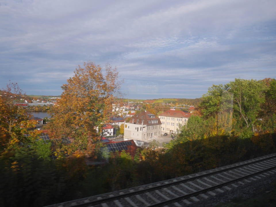 Leere Straßen zum frühen Sonntag. Ab und zu legte ich mal den Jogging-Modus ein, kam dann rechtzeitig zum Zug. Mit dem €25 Bayern-Ticket ging’s zuerst nach Nürnberg und dann nach Steinach. Dort eilte ich, wie einige andere schnell zum Anschlusszug, der dann aber doch noch 20′ mit technischen Problemen dastand. Insgesamt waren nur eine handvoll Leute unterwegs. Alles relaxt.