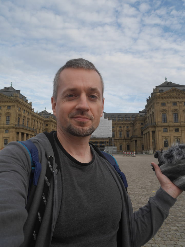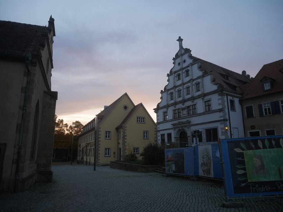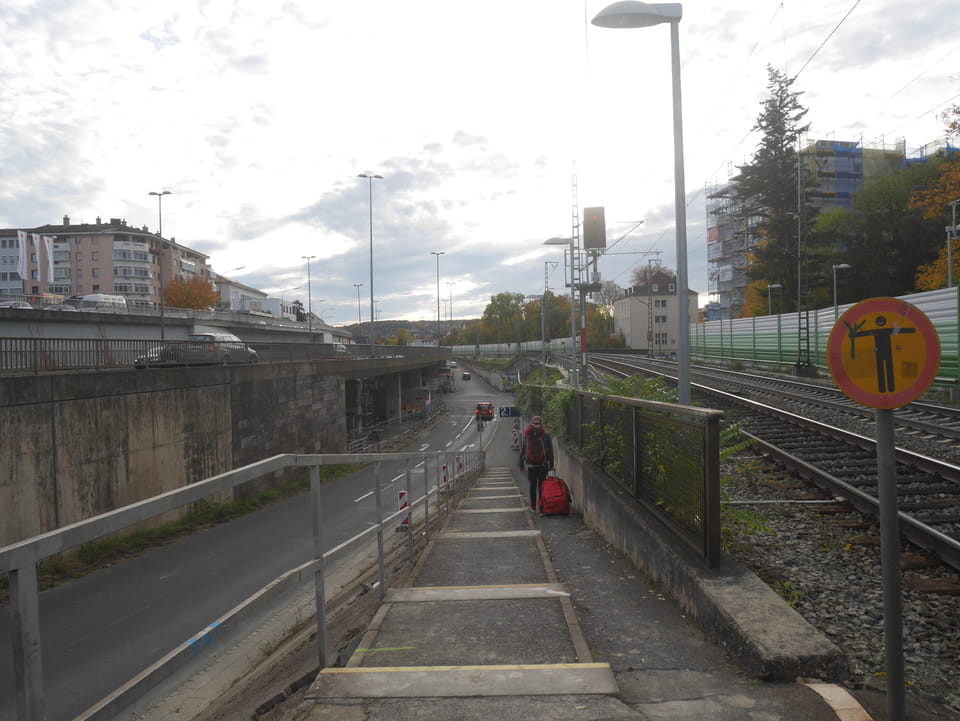 Wieder zurück nach Steinach und schließlich nach Würzburg musste ich meine Zeit besser aufteilen. Statt Bamberg entschied ich mich für Schweinfurt m Anschluss, weil die Fahrt mit ca. 40′ um einiges kürzer ist. Es wird nun noch zeitiger dunkel. Als dann der Zug in Würzburg Süd schon Halt machte, steg ich kurzentschlossen aus. Ich war in der Nähe der Würzburger Residenz, wo ich auch das Video startete.