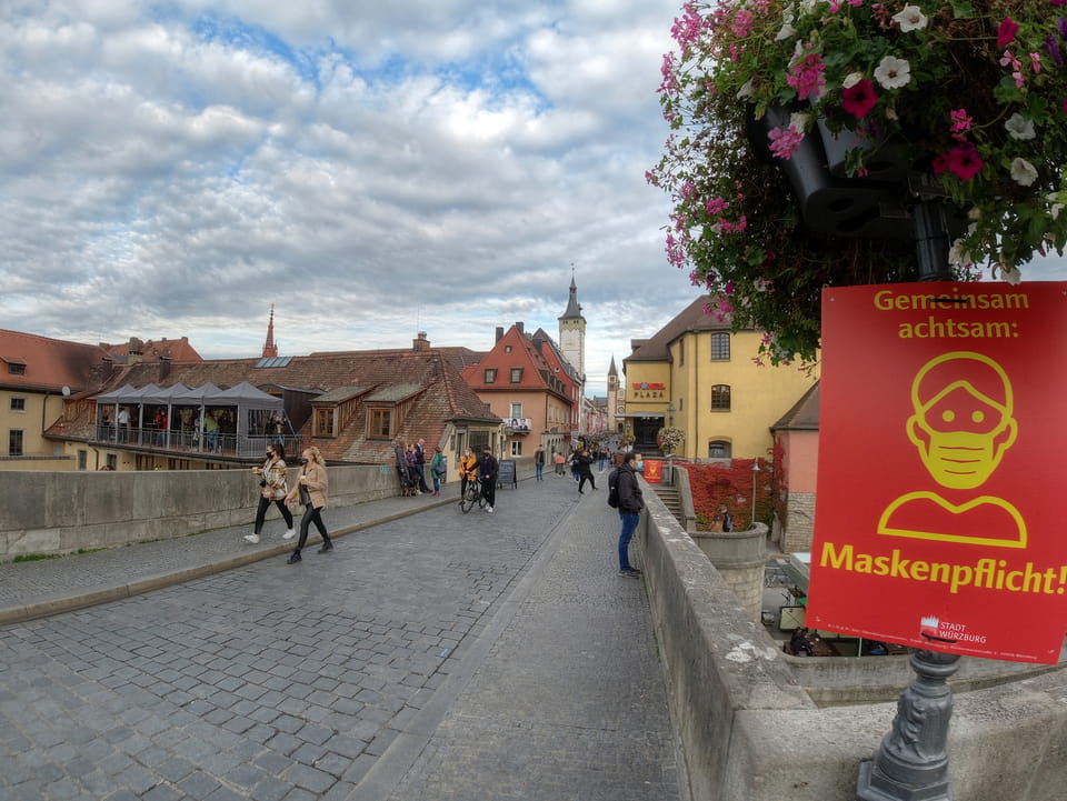 Die Stadt sieht auch nett aus. Viele Kirchen und auch ein Markt zum Sonntag Auf der alten Mainbrücke war Maskenpflicht. Es gab recht vel zu sehen, sodass es mit meiner Abfahrt knapp wurde. Die letzten paar Minuten joggte ich … und schaffte den Direktzug nach Schweinfurt Stadt.