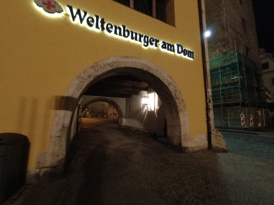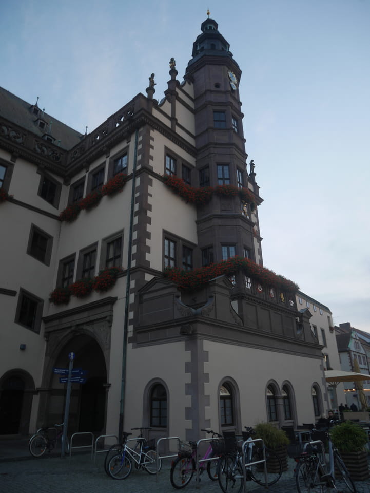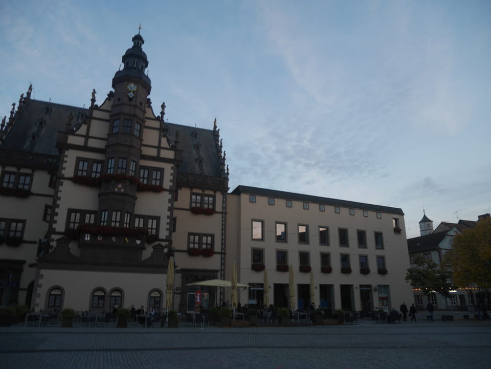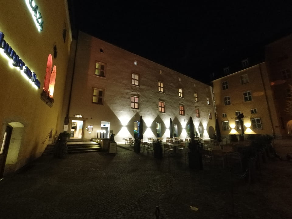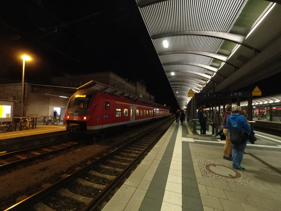 Der Haupbahnhof in Schweinfurt ist ein Stück von der Altstadt entfernt. Nicht alle Züge halten in Mitte und Stadt. Als ich dann dort war, wurde es schon finster. Ich legte los und sah nun auch noch Schweinfurt – sehr ruhig und langweilig an diesem Sonntag Abend. Auch hier hatte ich weiger als eine Stunde Aufenthalt, die ich aber gut nutzte. Meine Verbindung zurück nach Regensburg schaffte ich ein weiteres Mal. Dabei erreichte ich noch schnell meinen Vater für die Geburtstagsgrüße.