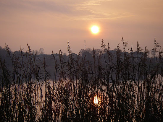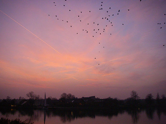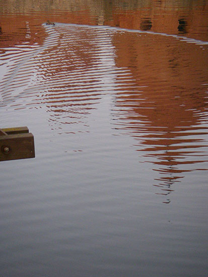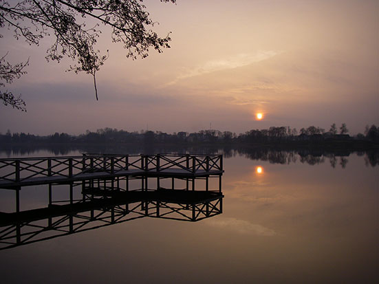 Viele Touristen schienen nicht mit dem Bus gekommen zu sein. Ich sah mich als einzigen wegspazieren. Bald gab es ein wunderschönes Bild. Heute war es windstill und das Wasser somit spiegelglatt. Mit dem Sonennuntergang an diesem kalten Herbsttag ergab sich eine schöne Szene. Ich knippste ein paar kitschige Photos.