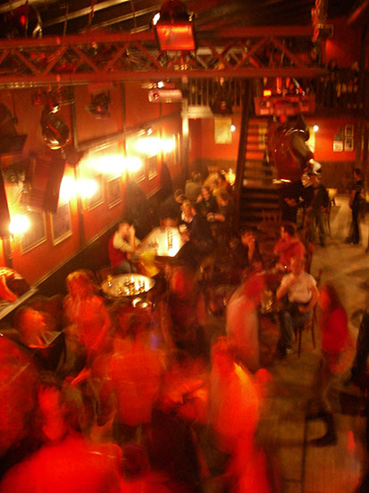 Irgendwann hatte ich genug und wir gingen weg. Da ich mich schon auskannte, führte ich alle zum Brodvejus. Oben war das Bier alle, ich holte mir unten welches. So richtig konnte ich mich mit denen nicht unterhalten. Irgendwie war’s langweilig, oder ich eben. Ich tanzte bissel, versuchte Konversation aber entweder war ich zu müde oder was weiß ich. Zur Gruppe stieß dann noch ein Amerikaner zu, der hier in Vilnius lebt. Scheint ein wichtiger Typ zu sein. Er kannte sich in Russland aus und machte schon so manche Bekanntschaft mit dem russischen Polizeiapparat.