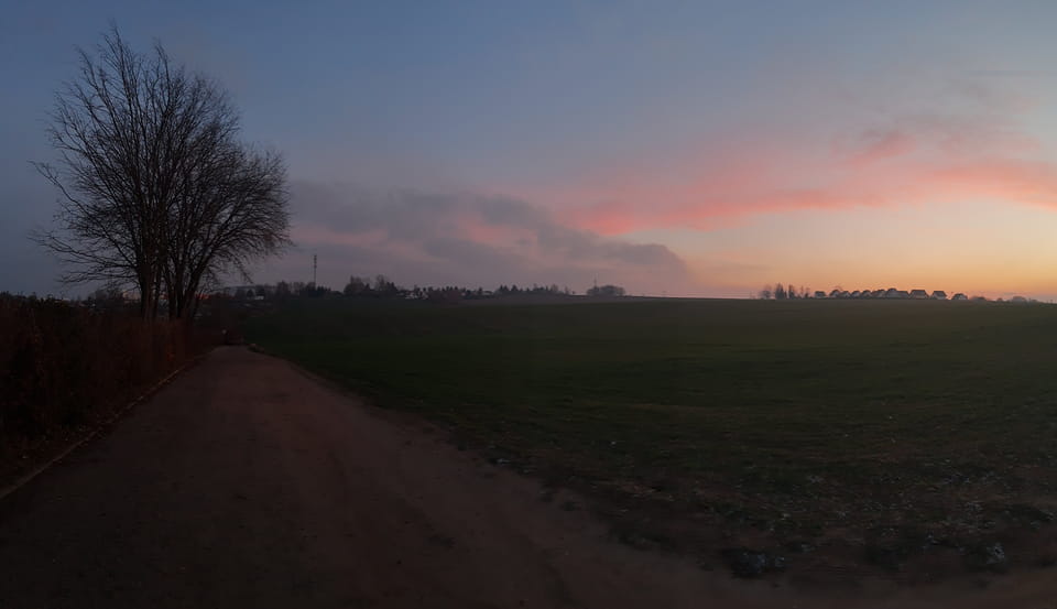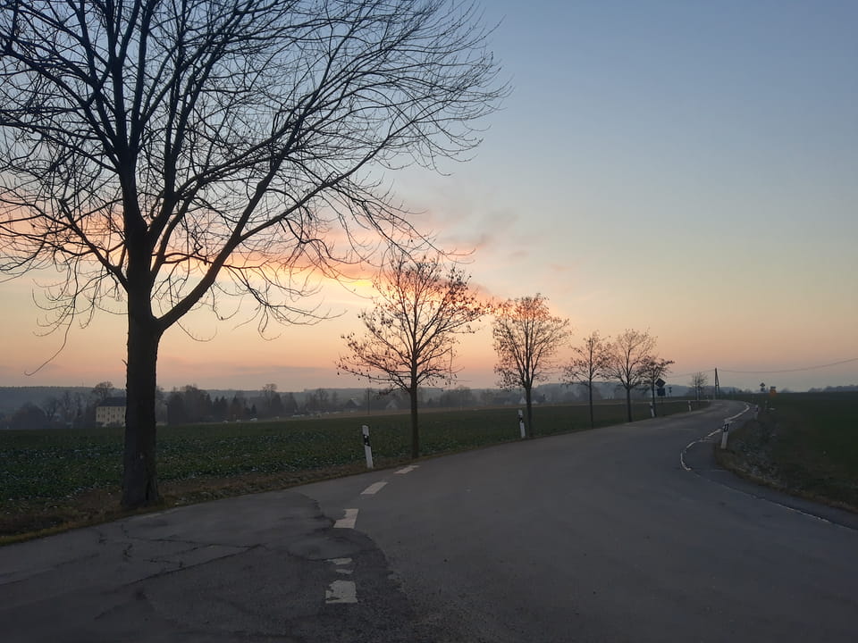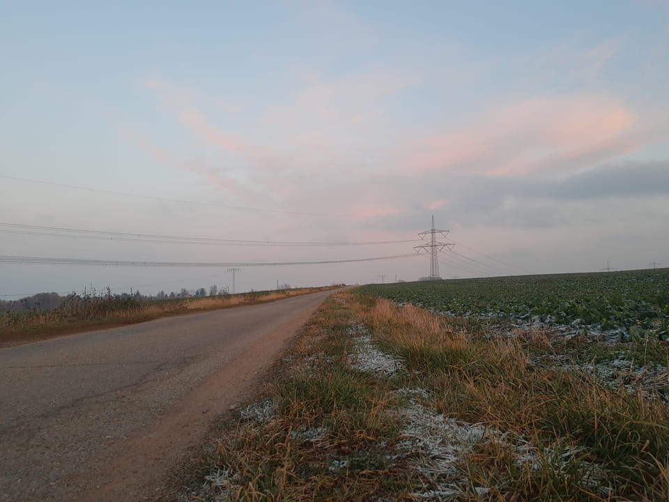 Ich dreht kurz vor Sonnenuntergang noch eine Jogging-Runde. Mit Frost auf den Feldern wurde es an den Händen heute zu kalt. Ab demnächst sind Handschuhe angesagt. Das Poco ist zu groß, dass man es normal mitnehmen könnte.