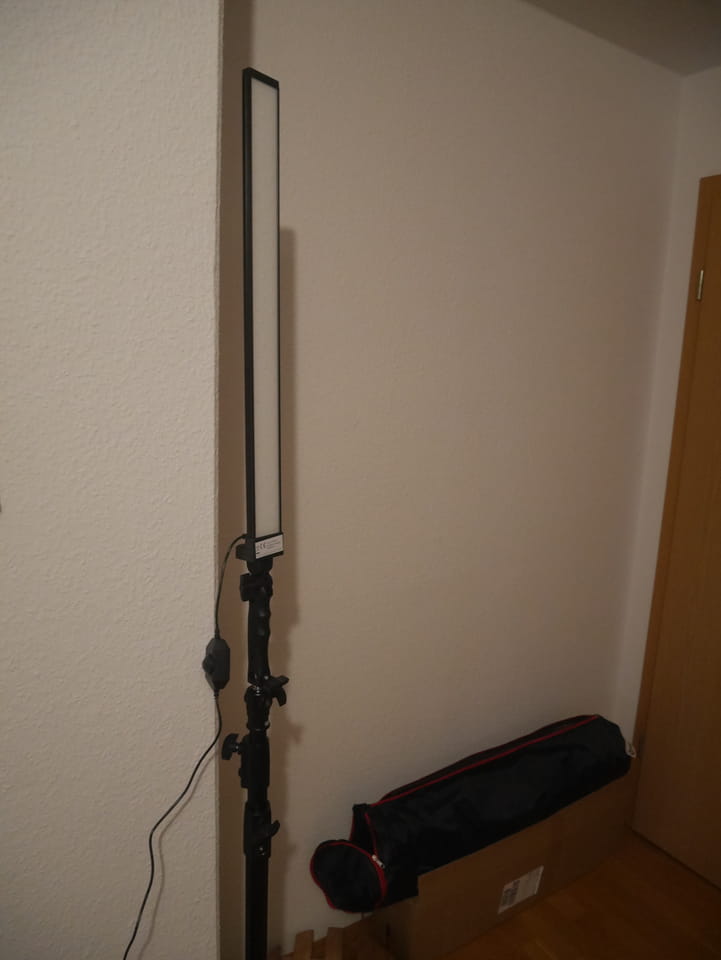 Ich baute mal die gestern erhaltenen Bresser Lichter auf. Mit den Stativen nehmen sie doch etwas mehr Platz ein, als gedacht. Die Helligkeit sollte nun endlich ausreichen. Ich testete auch die Handy-Cams, nehme nun die Moto action und Poco in der Ultra-Wide Linse. Beide bringen ähnliche FOV. Im kleinen Zimmer reicht der Platz nicht für alles – besonders Bodenübungen.