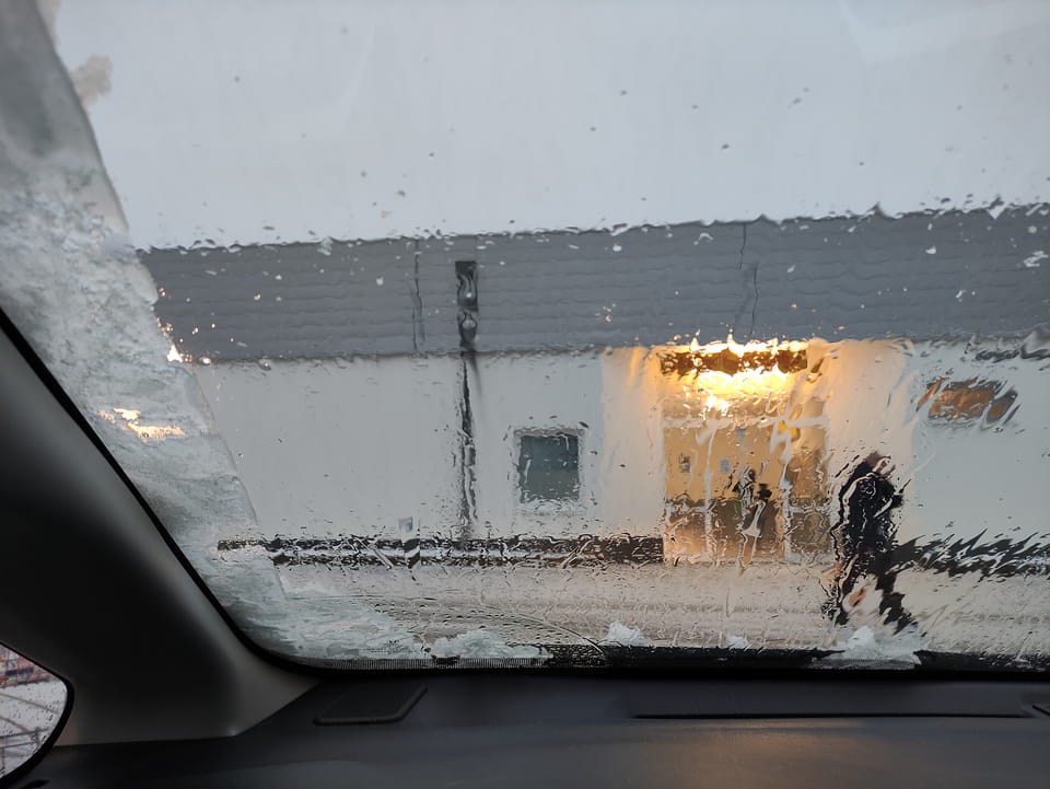 Schneetreiben draußen. Ein Kontaktlinsenproblem meiner Mutter brachte mir ein paar Wege. Ich blieb im Auto sitzen. Zur normalen Tageszeit sind die Einkaufszentren doch ganz schön voll. Riskant.