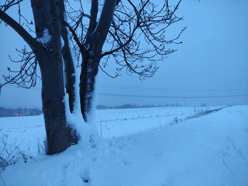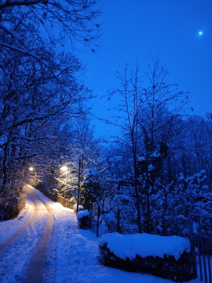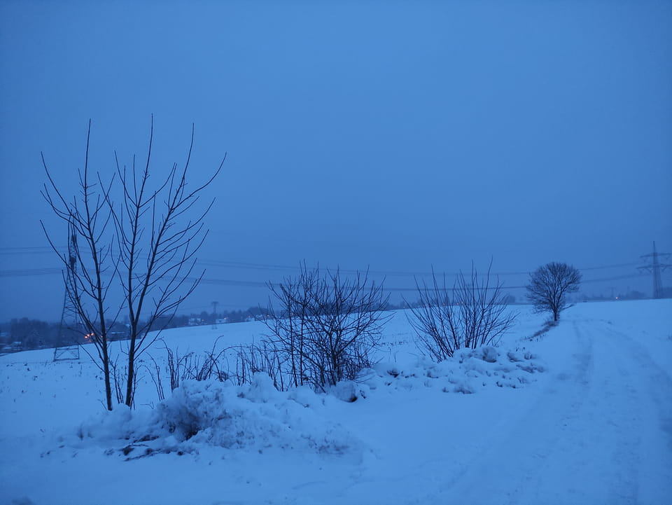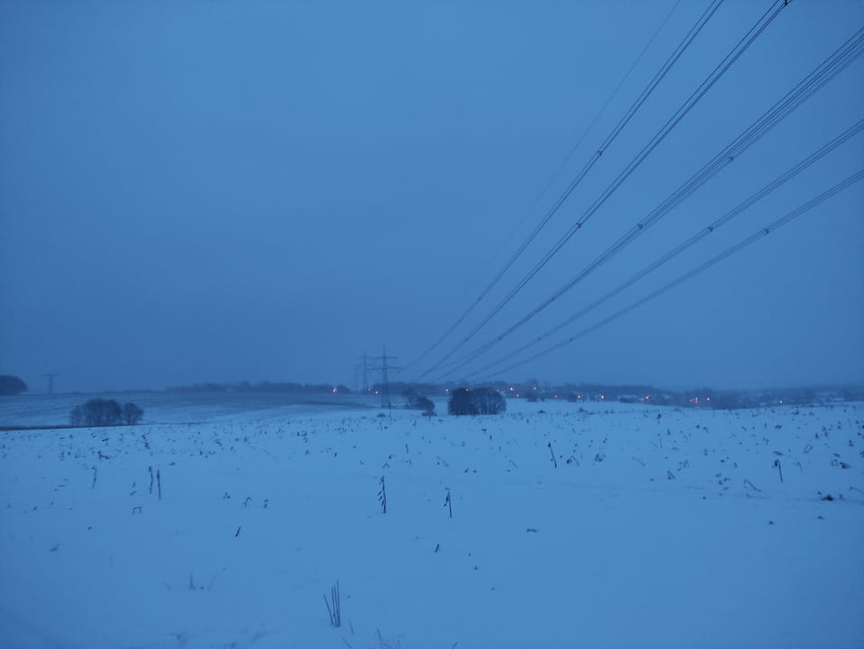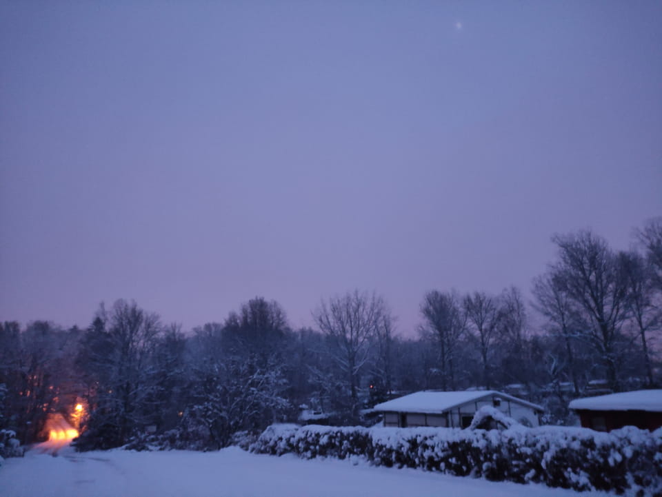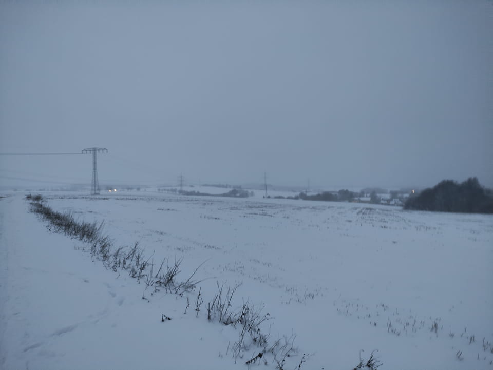 In der Nacht hatte es ordentlich geschneit. Ich schaffe es noch rechtzeitig zu einer Runde Jogging, bevor es wieder dunkel wurde. Damit war der Sonntag OK. Sport rettet den Tag.