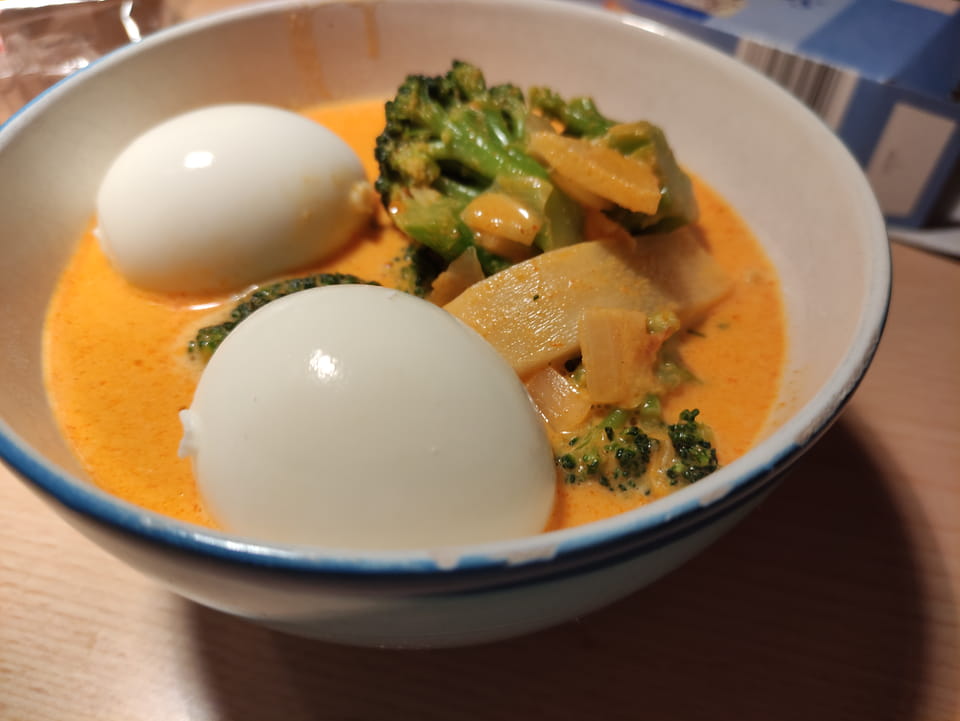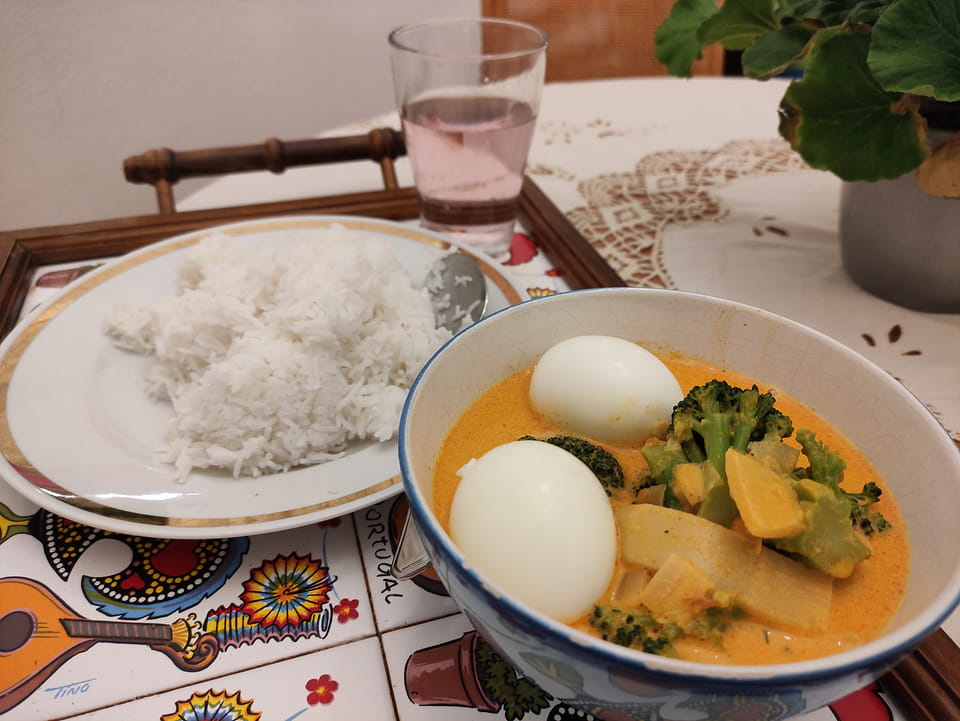 Ein gelbes Curry zum Abendessen war auch gut. Die Currypaste etwas lasch.