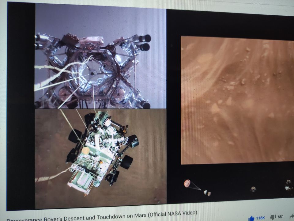 Ich guckte mir x Mal das Perserverance Lande Video an. Einfach phänomenal, sowas autonom durchzuführen und dann ein Video mit so guter Qualität! Besonders das Skycrane Manöver ist unglaublich. Ich sah damals live die Mission Control gerade noch das „touchdown confirmed“, 11 Minuten nachdem es eben auf dem Mars passierte – jetzt die ganze Landung synchron und in Farbe als Vdeo. Einfach irre fantastisch!