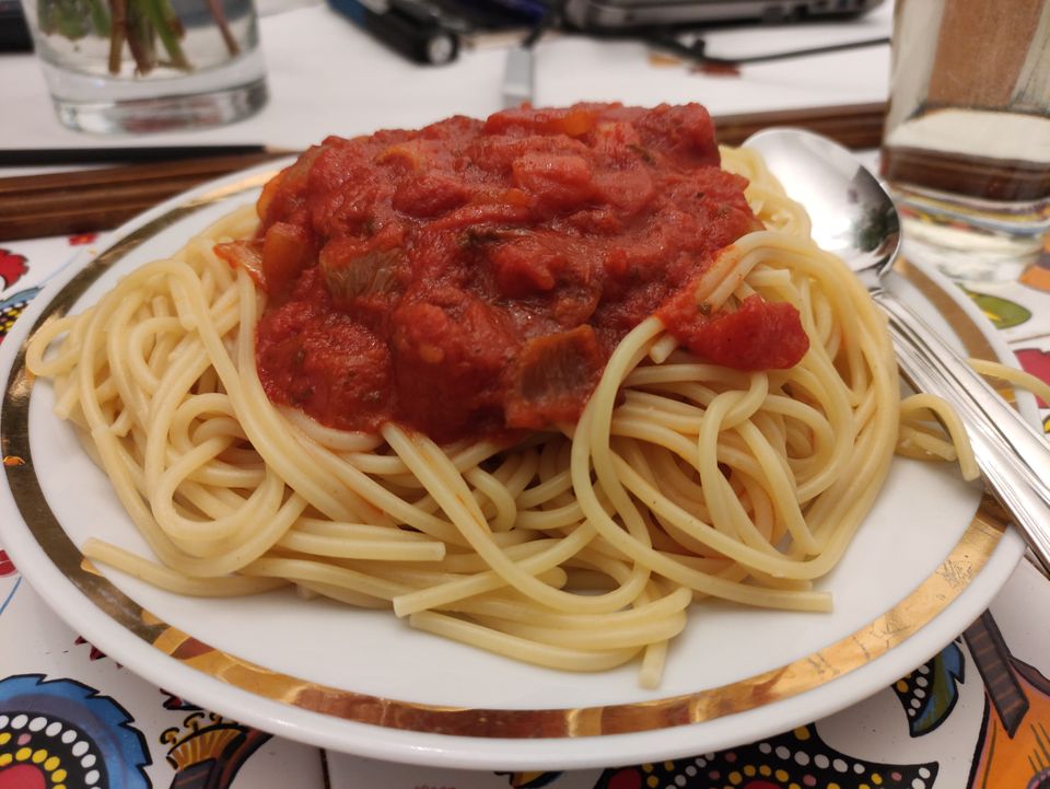 Joggen ging mäßig, dann ein kleiner Einkauf vor 20:00 bei Netto. Schließlich Spaghetti kochen und erst nach 22:30 an die Arbeit.
