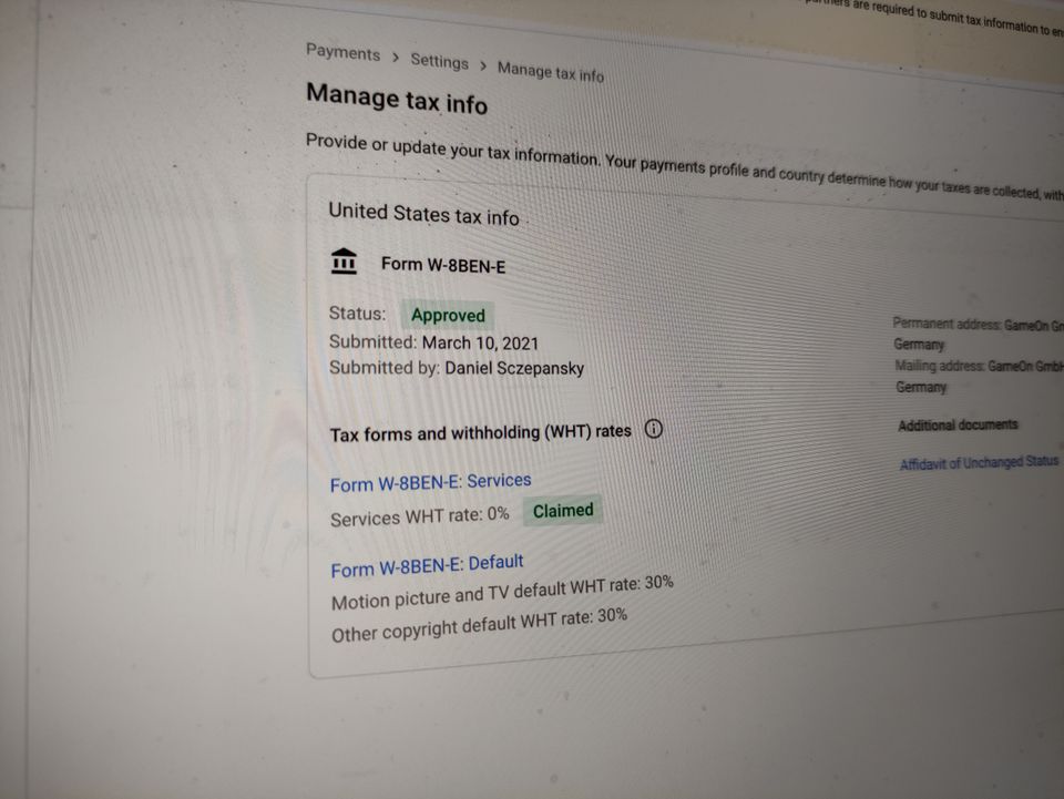 YouTube macht ernst und wollte die US-Steuer einbehalten, sofern man nicht von Doppelbesteuerungsabkommen freigestellt wird. Ich füllte das Formular online aus. Nicht ganz so einfach auf Englisch.