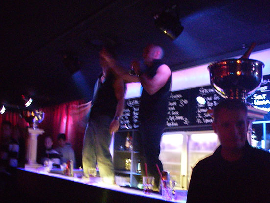 Heute wurde Studio 54 hier gefeiert. Es waren auch kurz vor 2 noch überraschend viele Leute da. eine 3×3 Plasma-TV Wand zeigte Eigenwerbung, die Bars wurden weiter umgebaut. Der Club ist jetzt bestens ausgestattet. Schick.