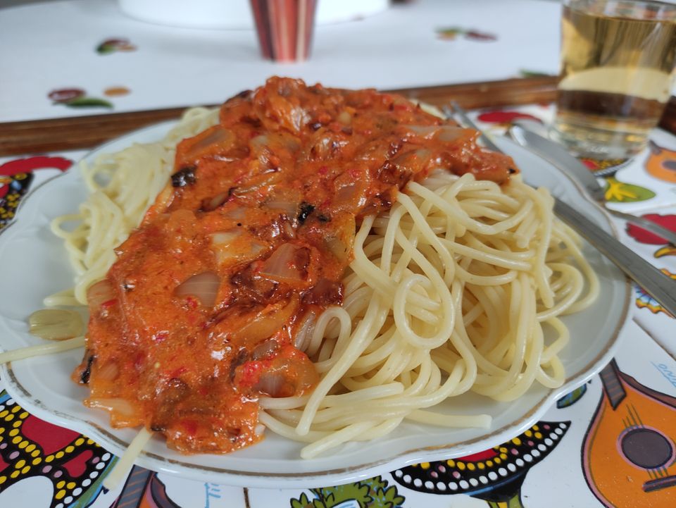 Abends kochte ich Spaghetti. Wieder Regen. Ein komischer Tag.