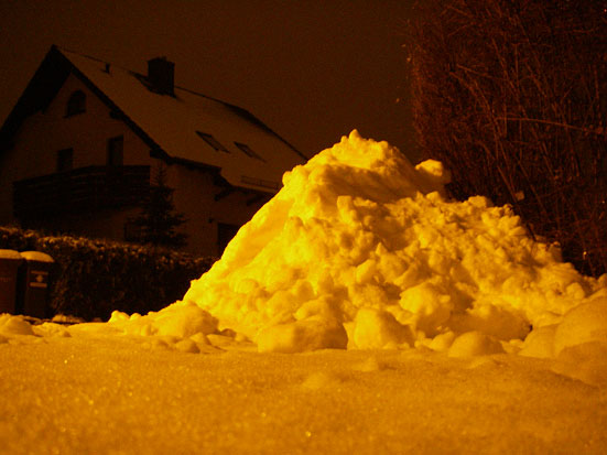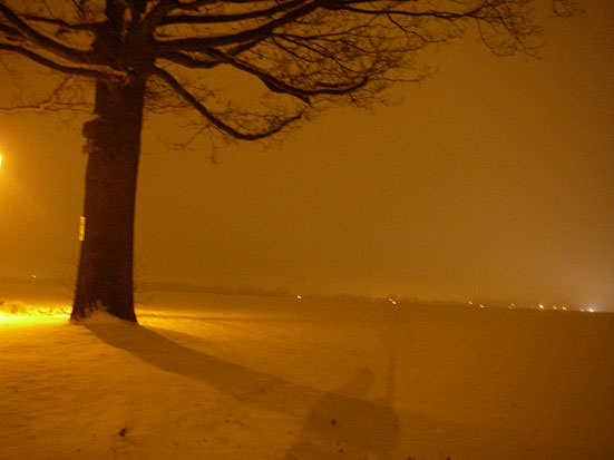Noch vor 11 setzte ich mich für eine halbe Stunde auf den Hometrainer. Ich kam gut ins Schwitzen und fühlte mich wieder besser. Gegen 3 Uhr in der Nacht machte ich einen Spaziergang durch die Siedlung. Der Schnee schmolz dahin, ich wollte wenigstens noch etwas davon sehen.