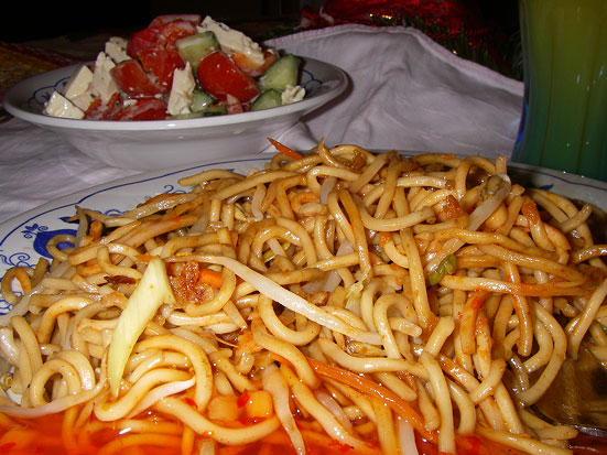 Ich schwang mich nochmal auf den Hometrainer. Eine halbe Stunde schwitzen bringt wirklich was. Beim Radeln versuchte ich noch „Built To Last“ zu lesen. Scheint auch interessant zu werden. Dann Abendessen – Bratnudeln und Thunfisch-Salat.