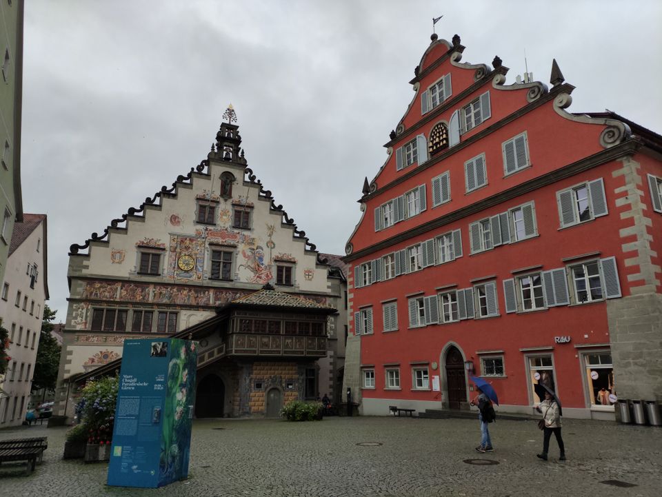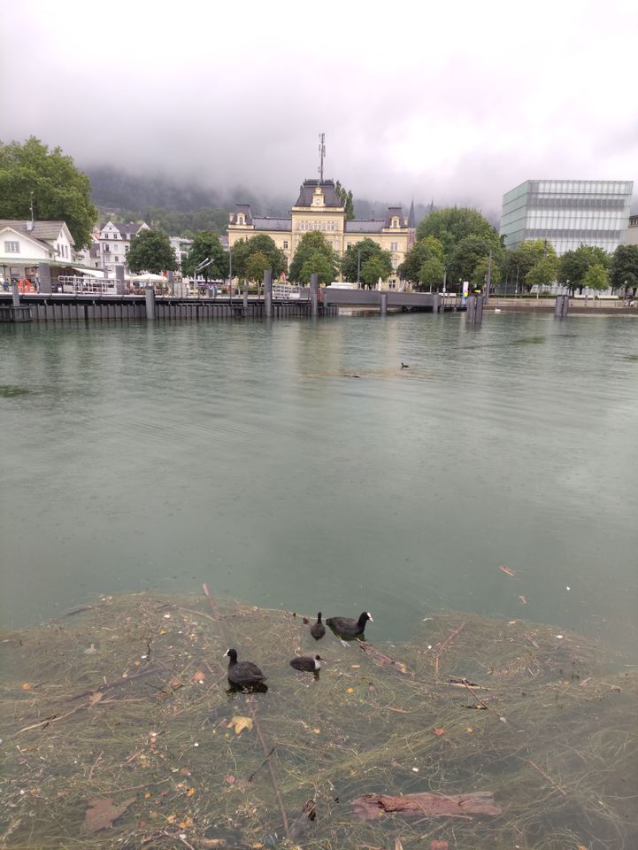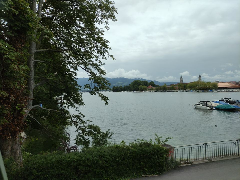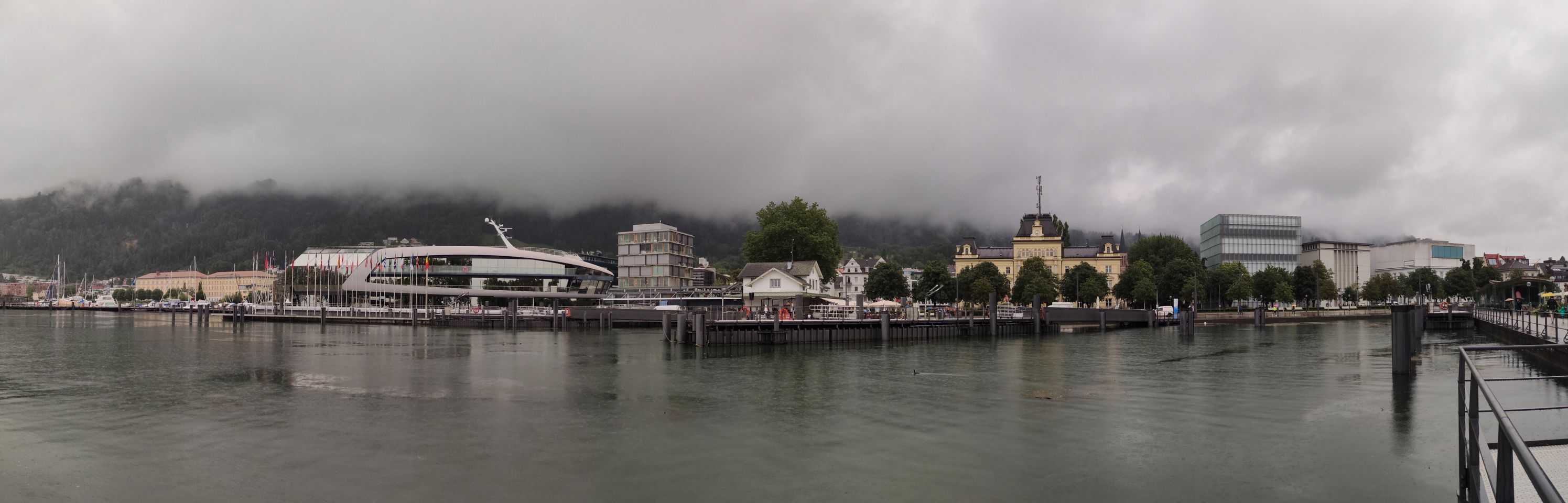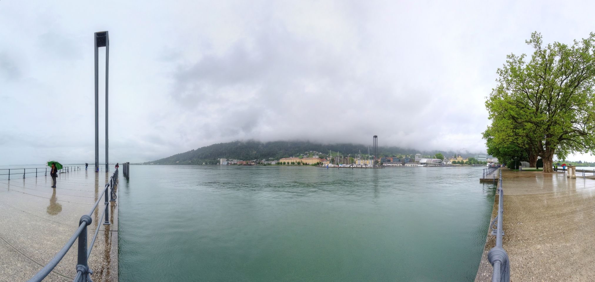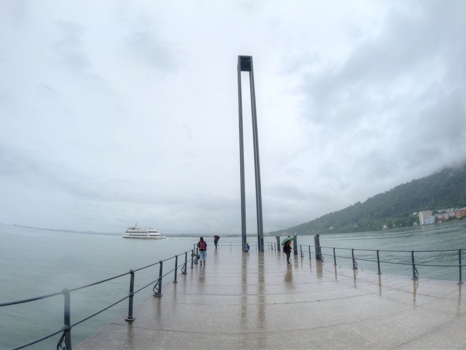 Als nächstes stand Bregenz an. Jetzt regnete es richtig, der Schirm war notwendig. Damit macht die Sache nur keinen Spaß, weil ich keine Photos knipsen kann und die Karte eben auch nicht sehe. Bregenz war auch nett, nur eben nicht bei dem Wetter.