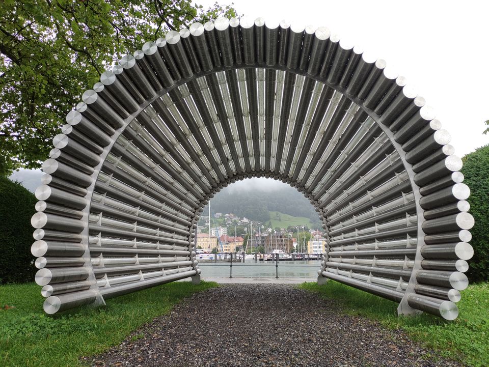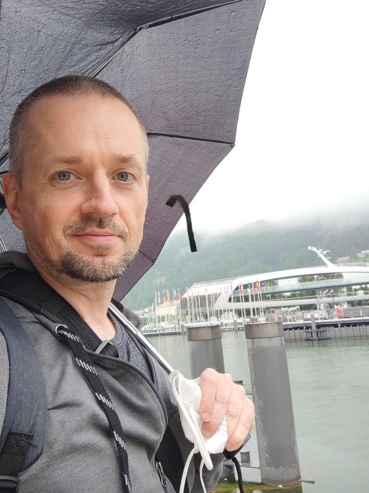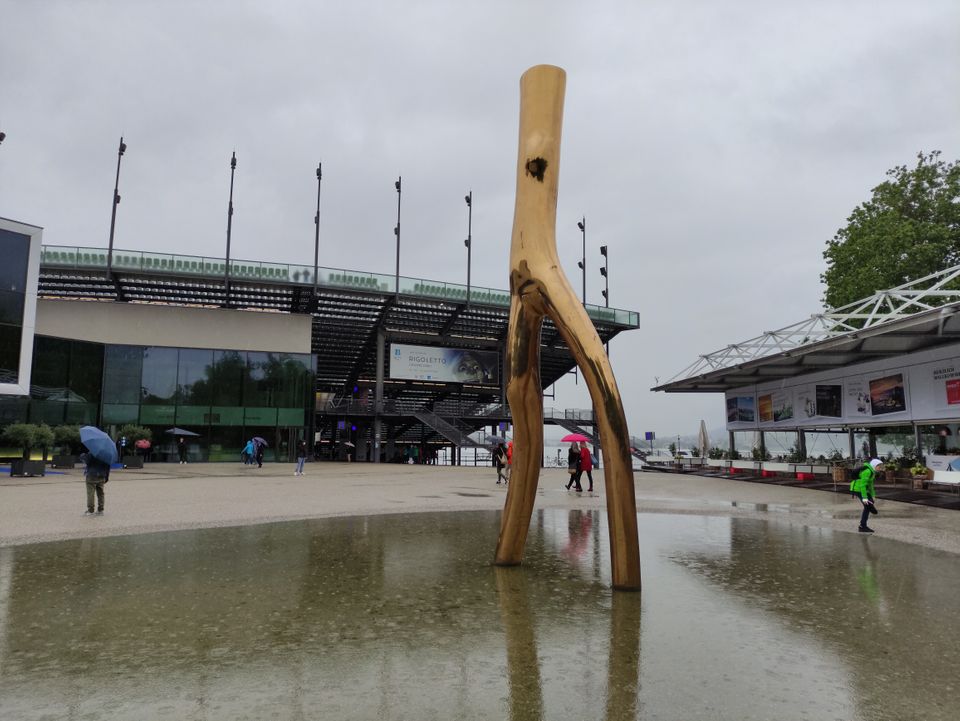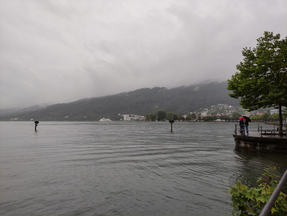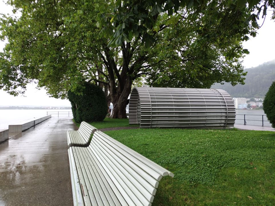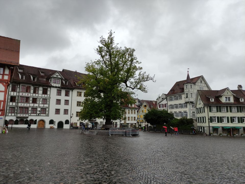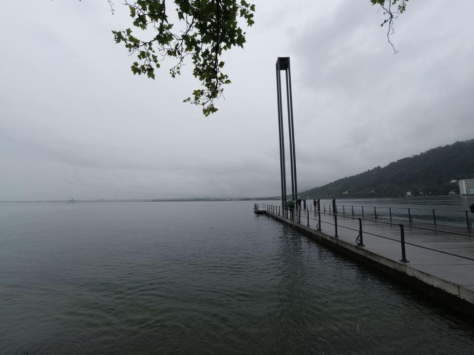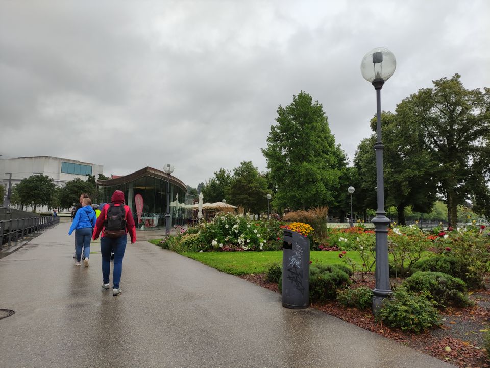 Als nächstes stand Bregenz an. Jetzt regnete es richtig, der Schirm war notwendig. Damit macht die Sache nur keinen Spaß, weil ich keine Photos knipsen kann und die Karte eben auch nicht sehe. Bregenz war auch nett, nur eben nicht bei dem Wetter.