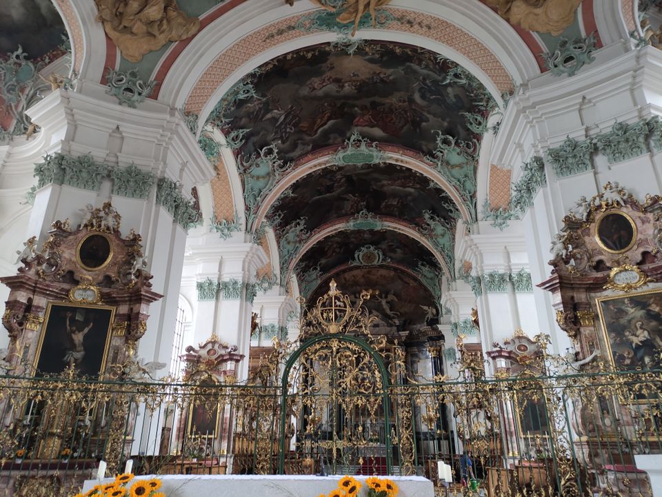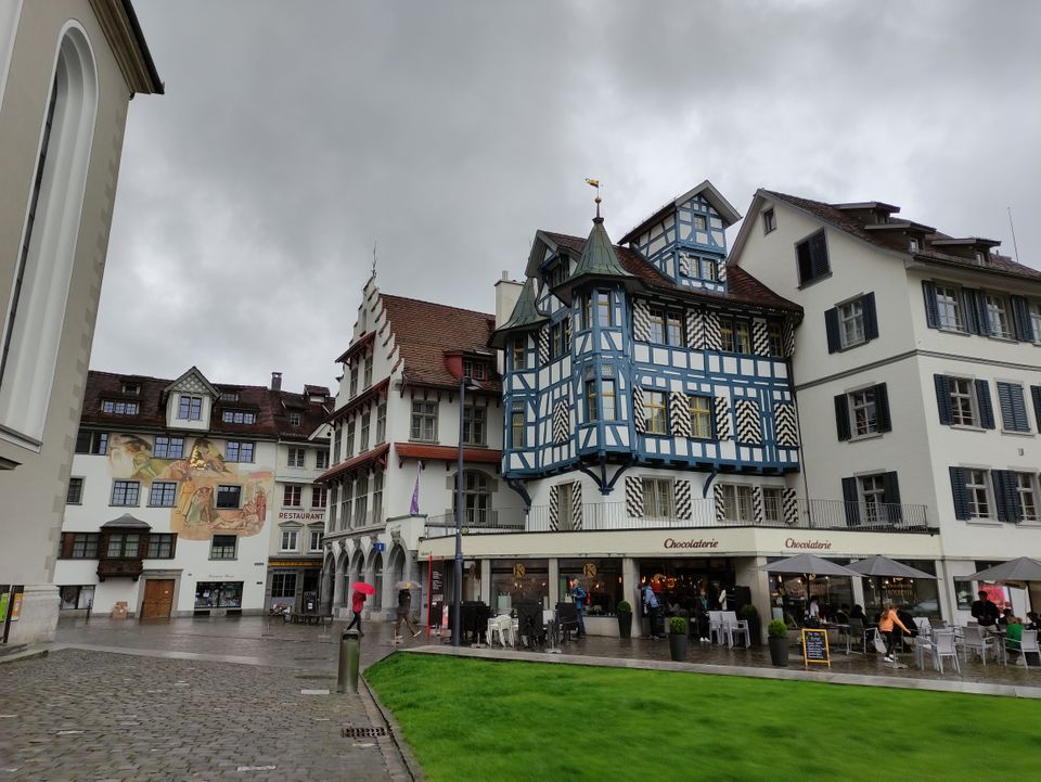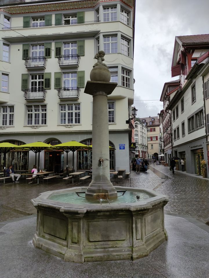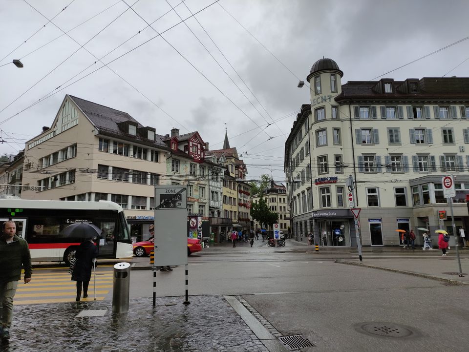 Ich hätte die Sache abblasen können aber nahm dann eine lange Verbindung über Lidau. So ging’s dann auch über die Bühne: München – Lindau – St. Margrethen – St. Gallen. Über 1 1/2h später da, als gedacht und damit etwas Stress. Ich startete mein Video und ging bei Nieselregen durch die Stadt. Das erst Mal seit langem wieder in der Schweiz gefiel mir das alles gut. Ich kam bis zur Klosterbibliothek, doch da schien Fototografieren verboten.