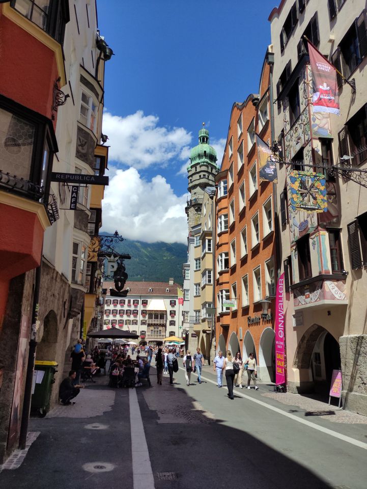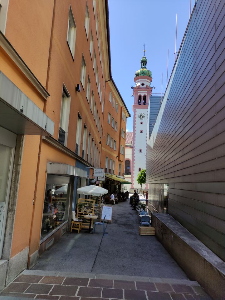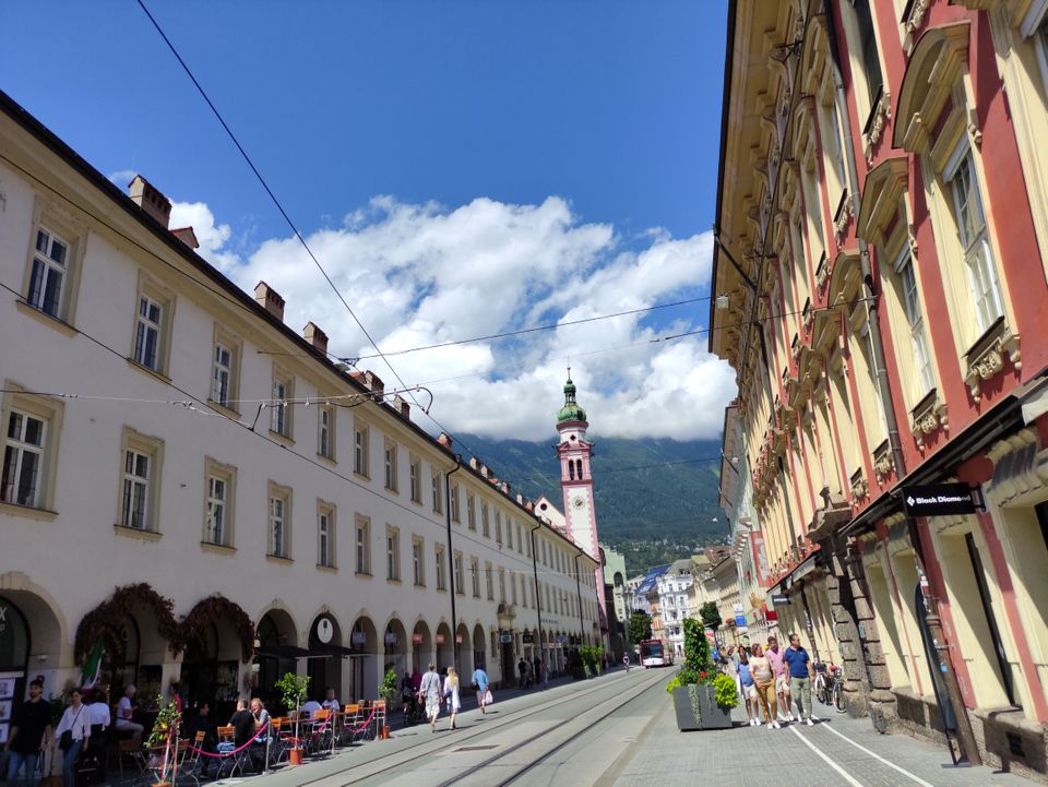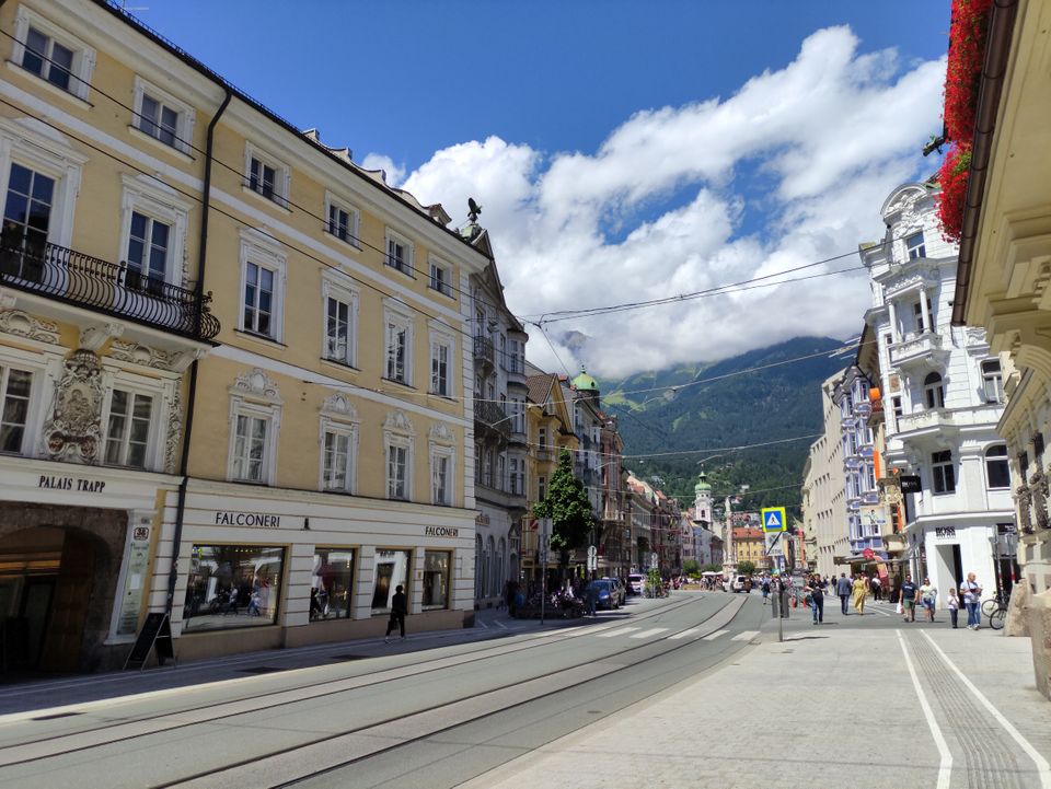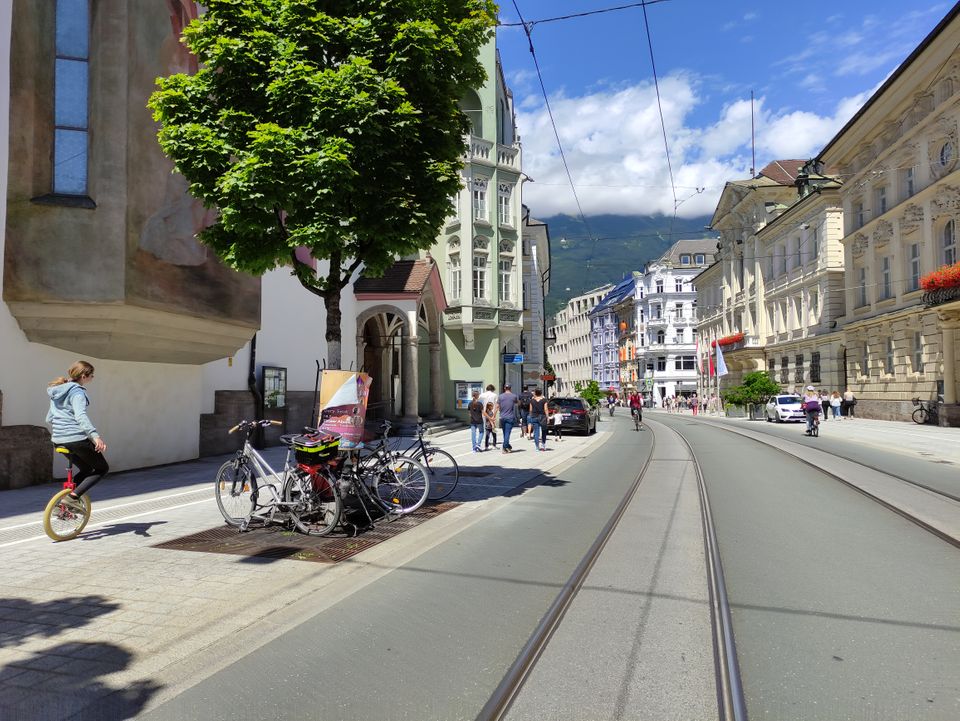 In Innsbruck dann machte ich eine kurze Mittagspause, bevor ich den Walk am Goldenen Dachl startete. Alles sah sehr hübsch aus. Ich drehte eine große Runde, die mangels Ahnung etwas durcheinander geriet. Einen Zug nach Seefeld in Tirol könnte ich um 15:04 schaffen, dachte ich. Ich legte einen Zahn zu und kam tatsächlich im Halblaufschritt bis um 3 zurück zum Bahnhof. Ich hatte eine reichliche Stunde gefilmt und war außer Puste. Den Stress, den ich mir durch ein paar Stunden mehr Schlaf ersparte, hatte ich nun durch knappe Verbindungen. Der Zug fuhr doch erst 15:08. Die paar Minuten extra brauchte ich auch.