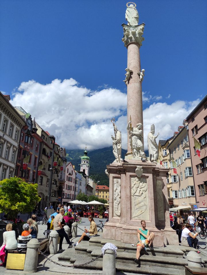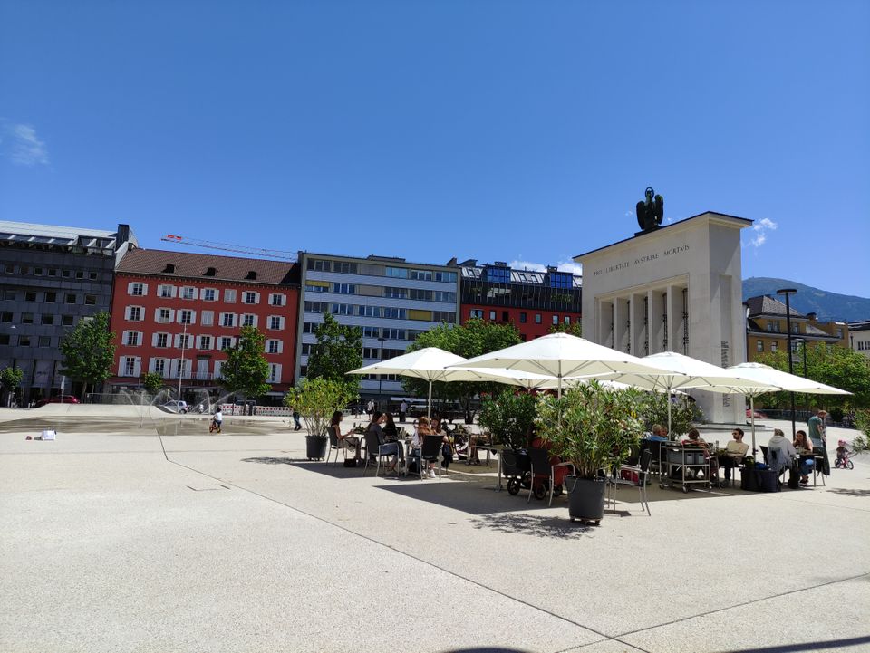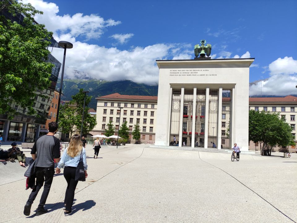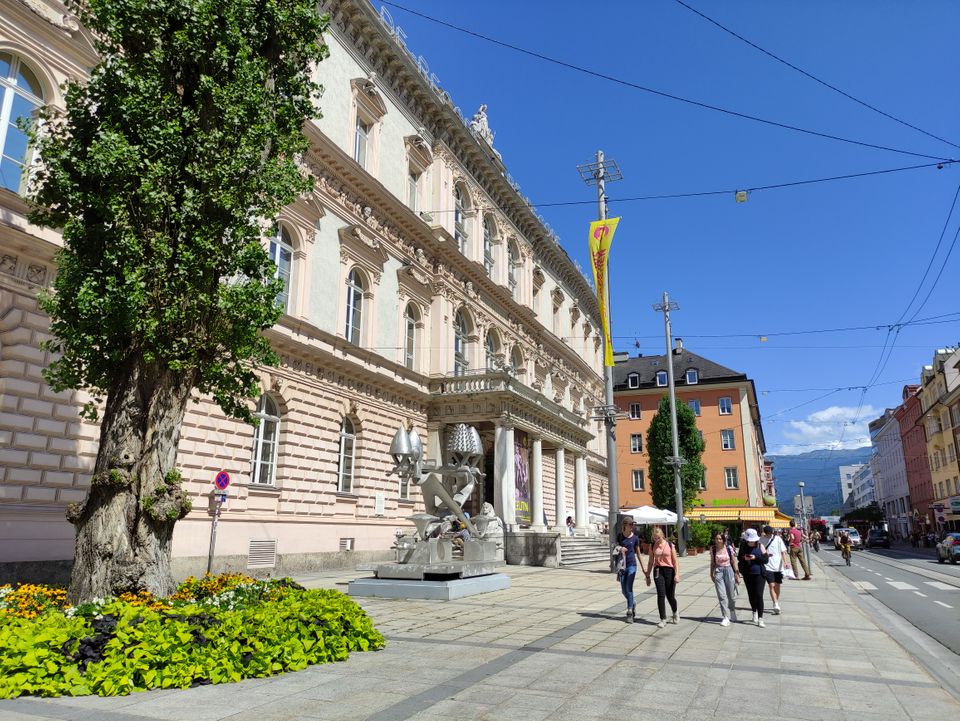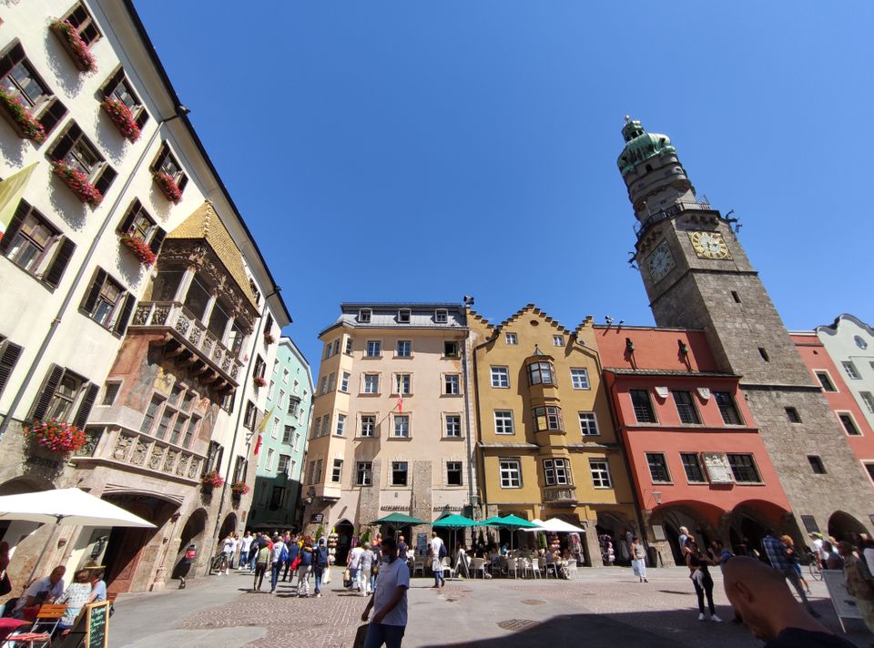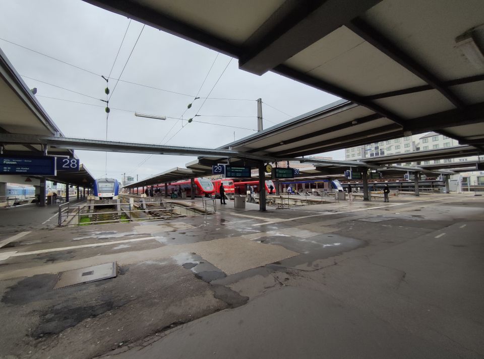 In Innsbruck dann machte ich eine kurze Mittagspause, bevor ich den Walk am Goldenen Dachl startete. Alles sah sehr hübsch aus. Ich drehte eine große Runde, die mangels Ahnung etwas durcheinander geriet. Einen Zug nach Seefeld in Tirol könnte ich um 15:04 schaffen, dachte ich. Ich legte einen Zahn zu und kam tatsächlich im Halblaufschritt bis um 3 zurück zum Bahnhof. Ich hatte eine reichliche Stunde gefilmt und war außer Puste. Den Stress, den ich mir durch ein paar Stunden mehr Schlaf ersparte, hatte ich nun durch knappe Verbindungen. Der Zug fuhr doch erst 15:08. Die paar Minuten extra brauchte ich auch.
