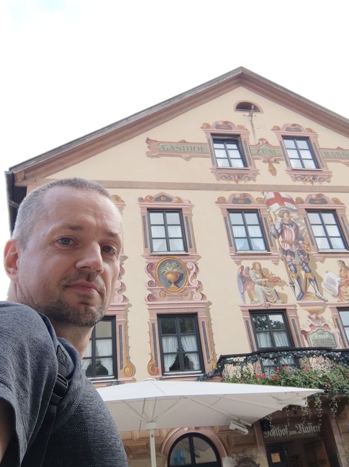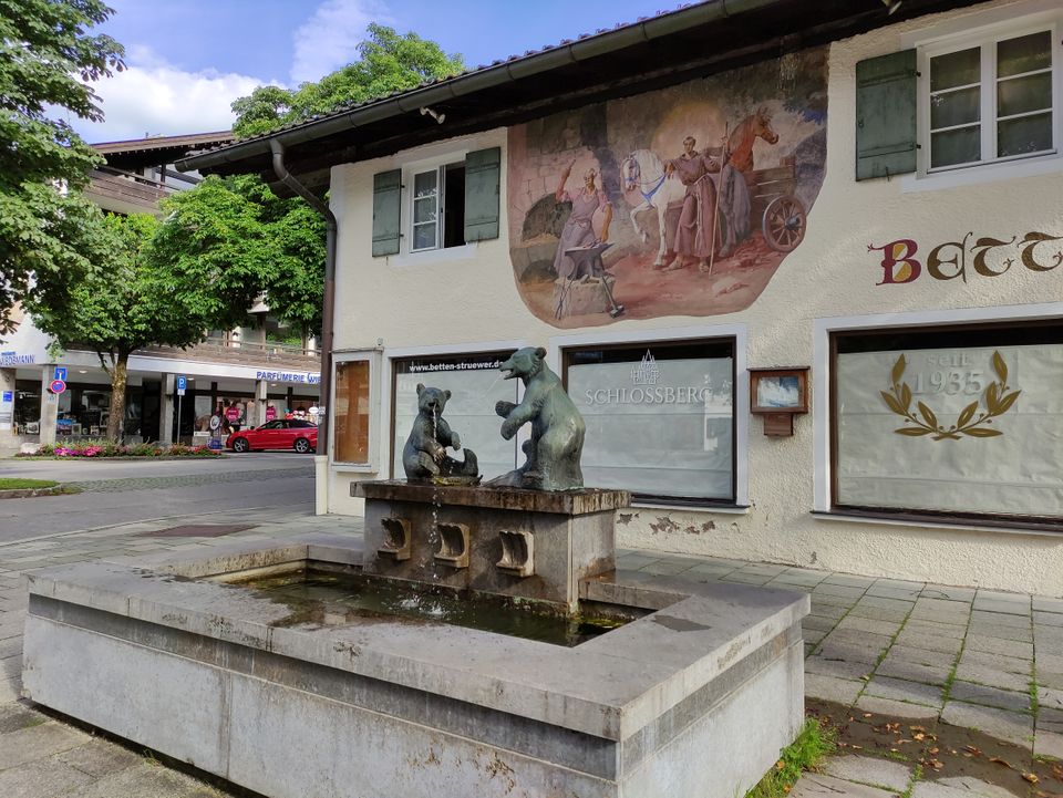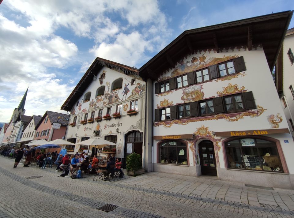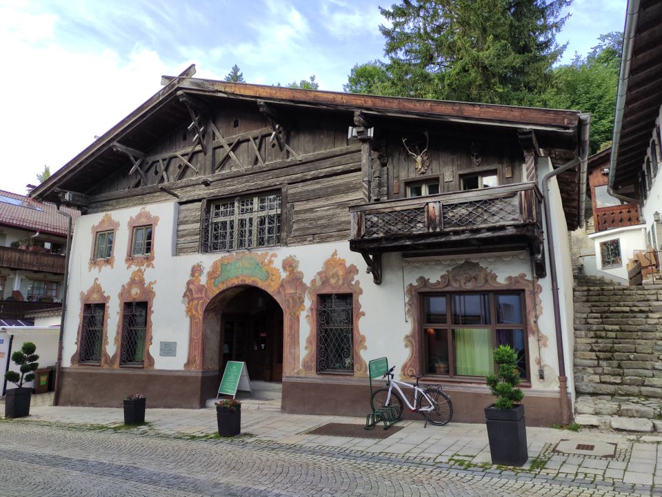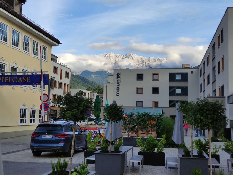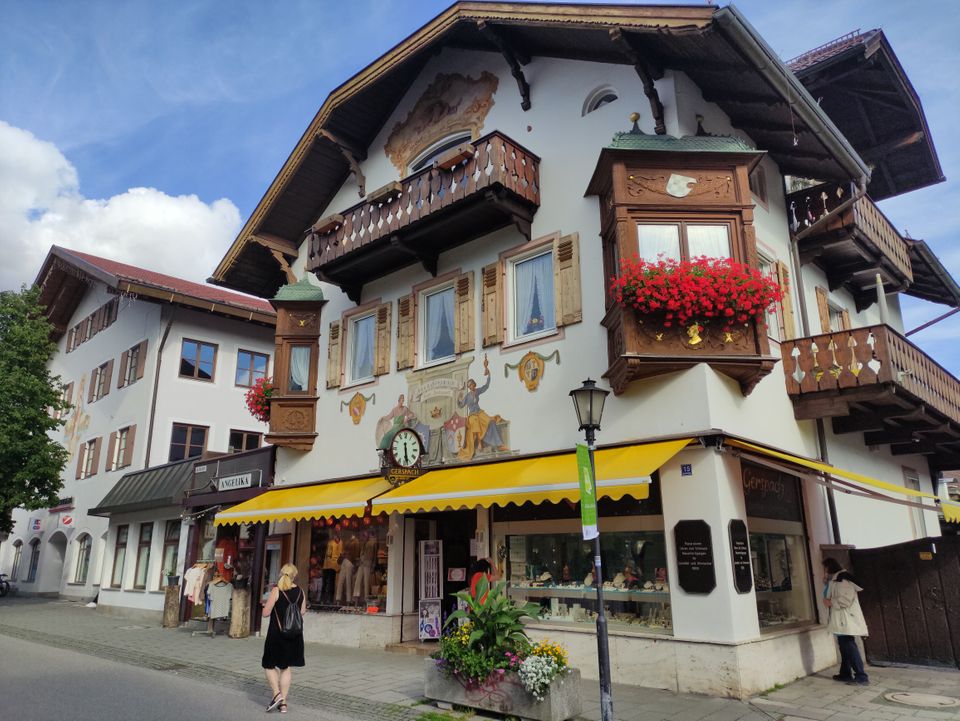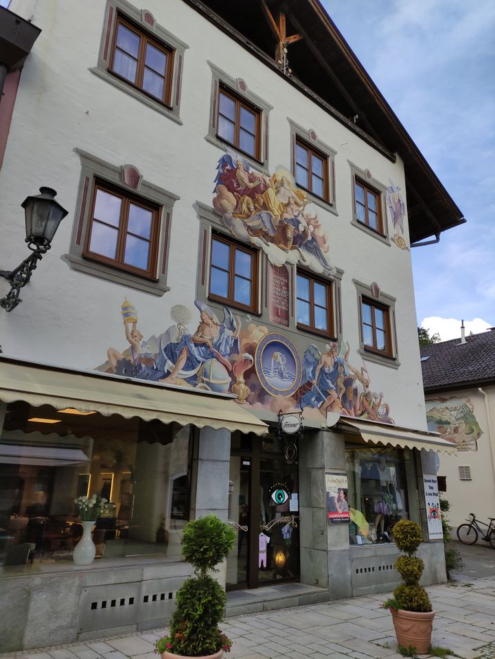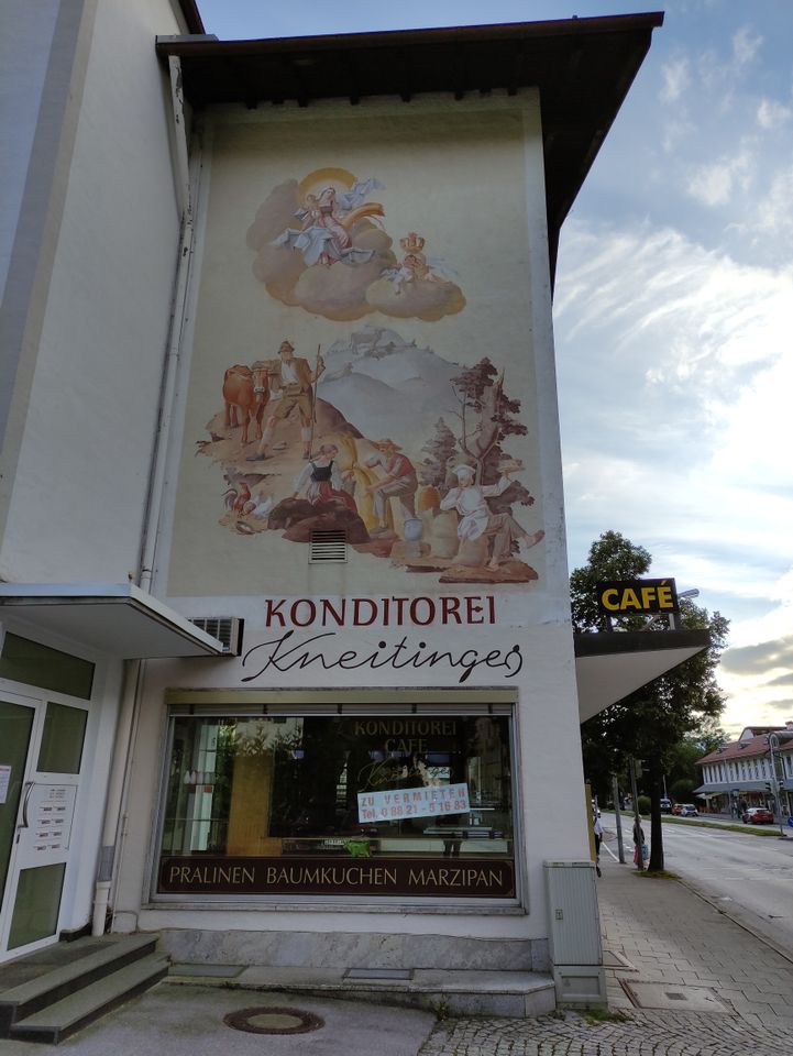 Ich war auf gutem Weg, bis 17:00 nach Garmisch-Partenkirchen zu kommen. Dort gönnte ich mir eine Pause, aß mein Proviant und ging runter zur Pfarrkirche. Von dort startete eine längere Tour (41′) durch Garmisch und dann nach Partenkirchen. Der letzte Teil wurde mir als fehlend vorgehalten. Partenkrichen ist in der Tat auch einen Besuch wert, mit einer Straße bemalter Häuser.