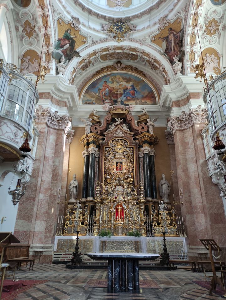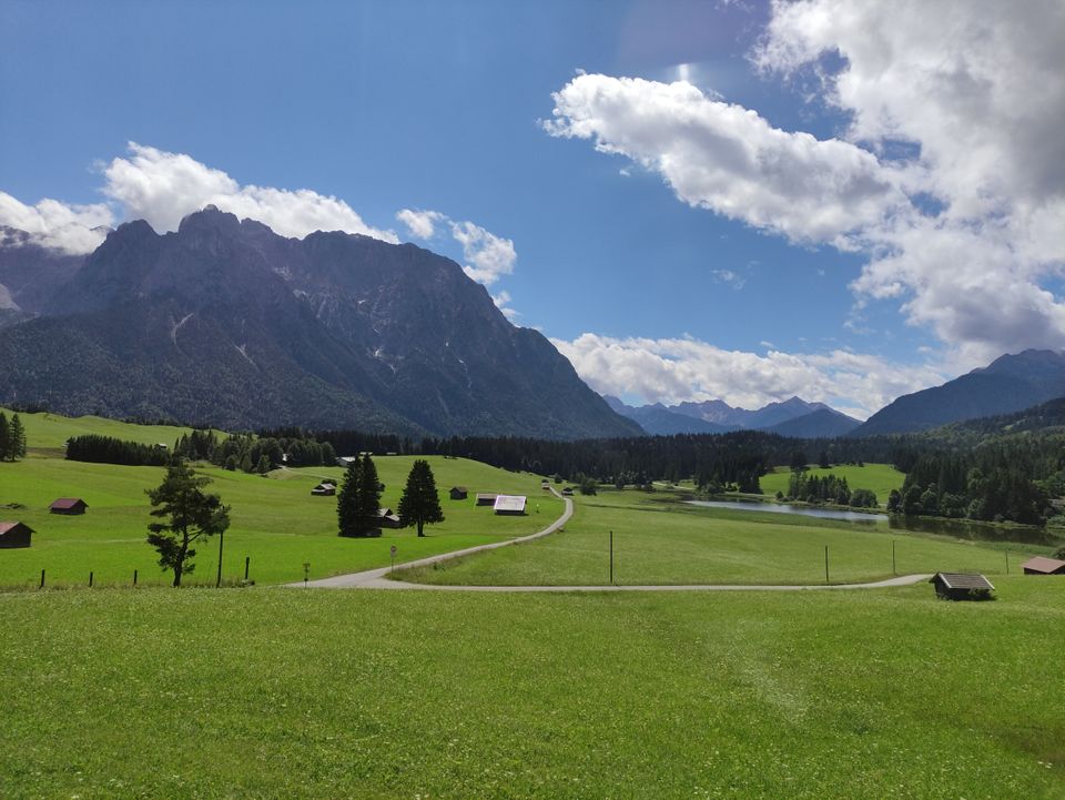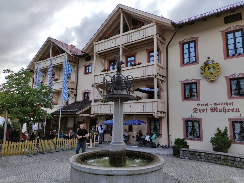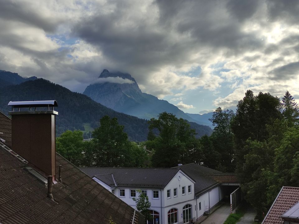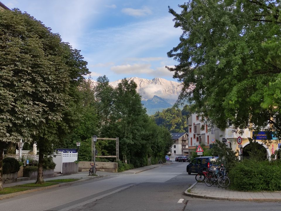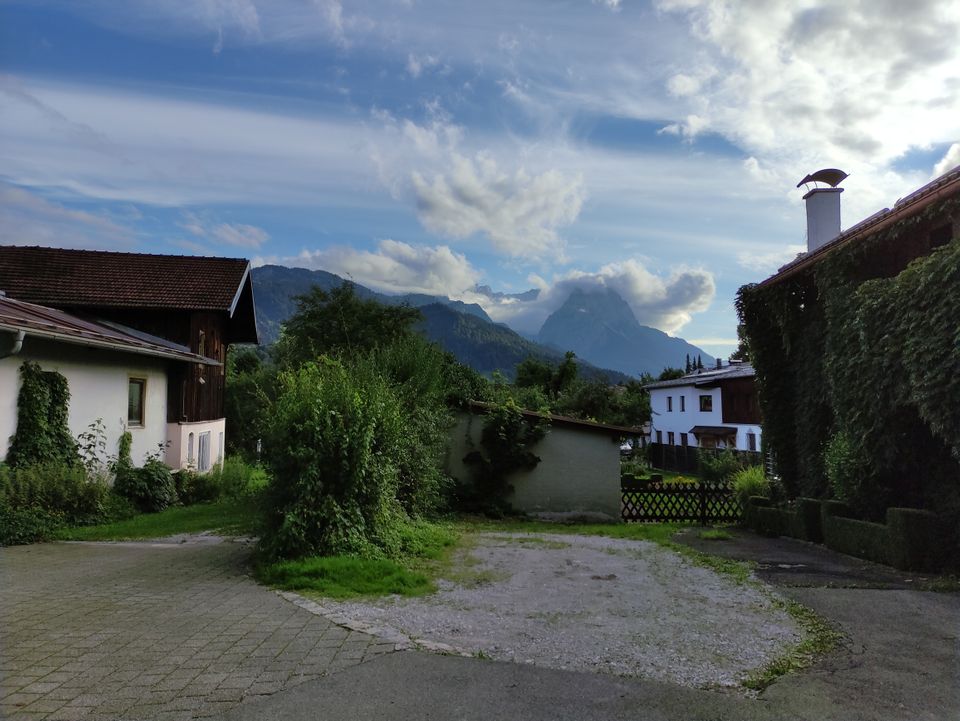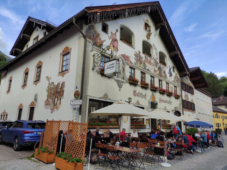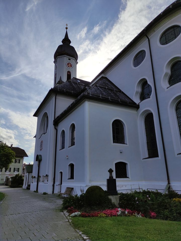 Ich war auf gutem Weg, bis 17:00 nach Garmisch-Partenkirchen zu kommen. Dort gönnte ich mir eine Pause, aß mein Proviant und ging runter zur Pfarrkirche. Von dort startete eine längere Tour (41′) durch Garmisch und dann nach Partenkirchen. Der letzte Teil wurde mir als fehlend vorgehalten. Partenkrichen ist in der Tat auch einen Besuch wert, mit einer Straße bemalter Häuser.