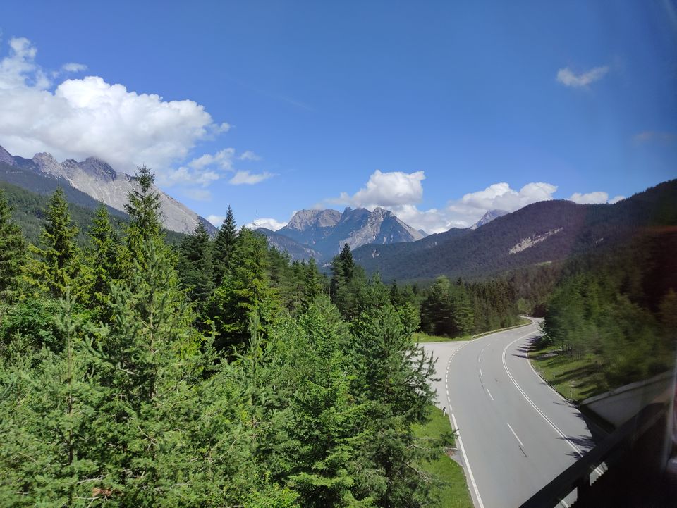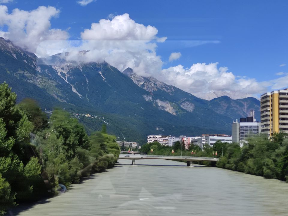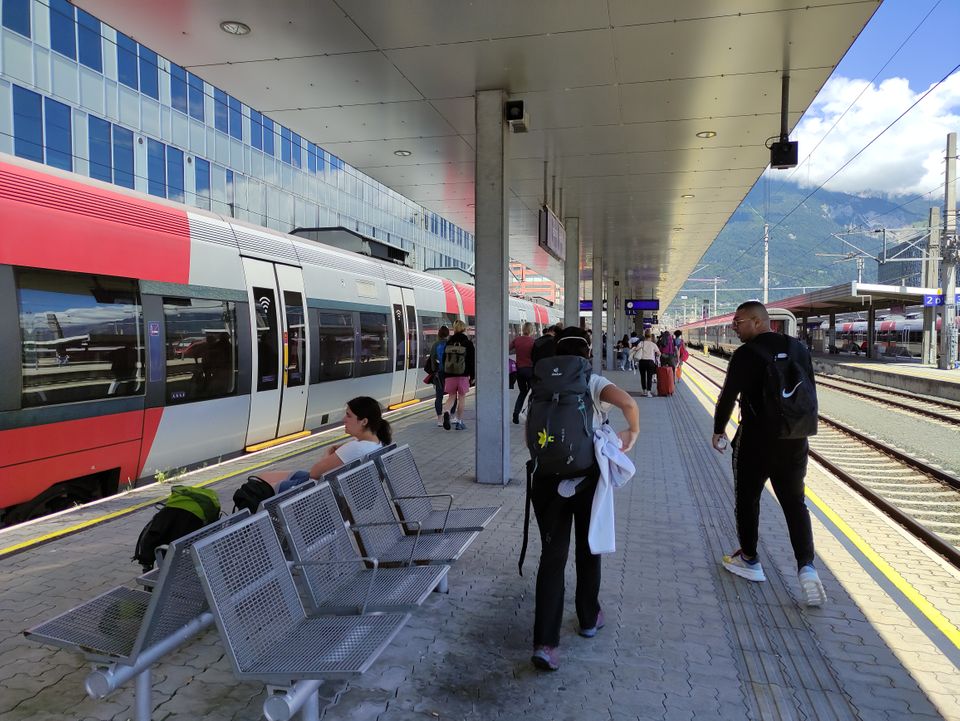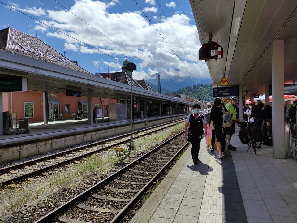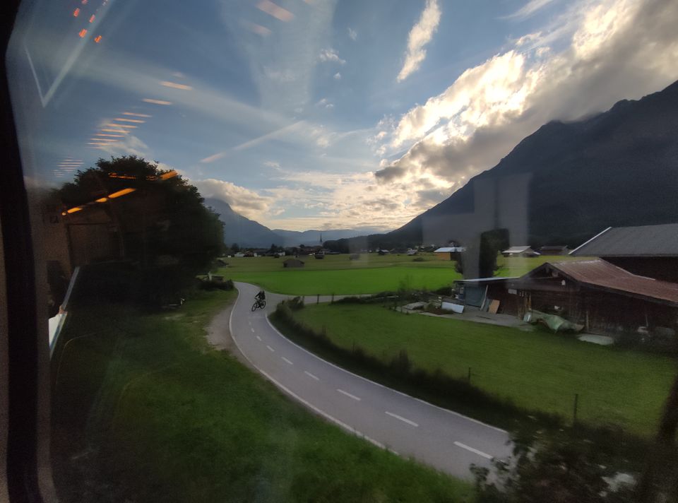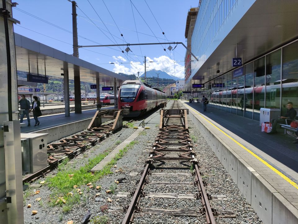 Super Wetter heute, die Berge kamen näher. Ich stieg in den Zug nach Innsbruck um. Ein Typ fragte laut Leute, ob man ihm eine Flasche Bier für €10 verkaufen würde. Kam zu keinem Geschäft.