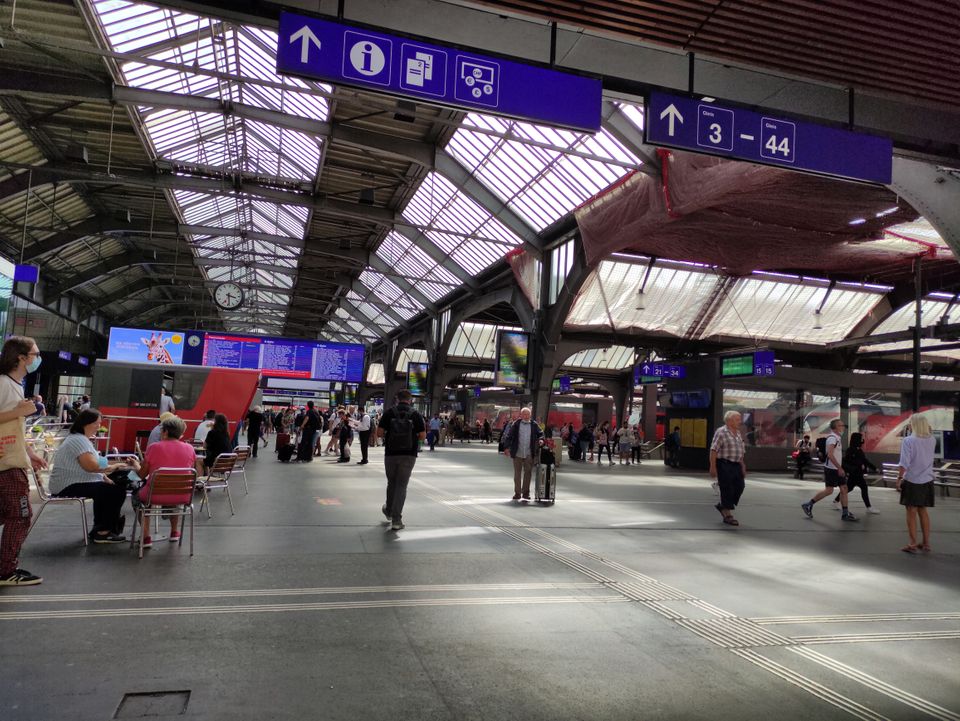 Mein Zug war für 9:10 angekündigt und ich hatte etwas Zeit. Am Bahnhof gab’s ein Testcenter, wo ich schnell einen Test bestellte und bekam. Ich wartete auf den EC nach Lugano und auf das Testergebnis. Dann kam es – „negativ“, also jetzt Richtung Schweiz. Das PDF mit dem Testergebnis schickte ich auch nach Chemnitz. Ohne Impfung hätte ich in häusliche Isolation gemusst.