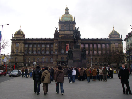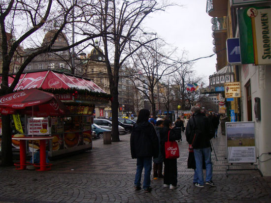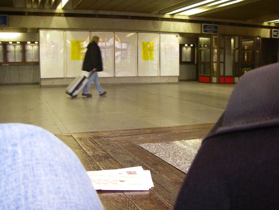 Mit dem Rucksack lief ich runter zum Museum und Wenzelsplatz. In den Straßen herum drehte ich noch ’ne Ehrenrunde. Ich war viel zu Zeitig dran. Der Zug um 10:34 war weg, 12:34 sollte der nächste fahren. Gegen halb 12 wolte ich dann aufm Hauptbahnhof das Ticket kaufen. ich bekam dann irgendwie mit, dass der Zug woanders abfährt; in Holesovice.
