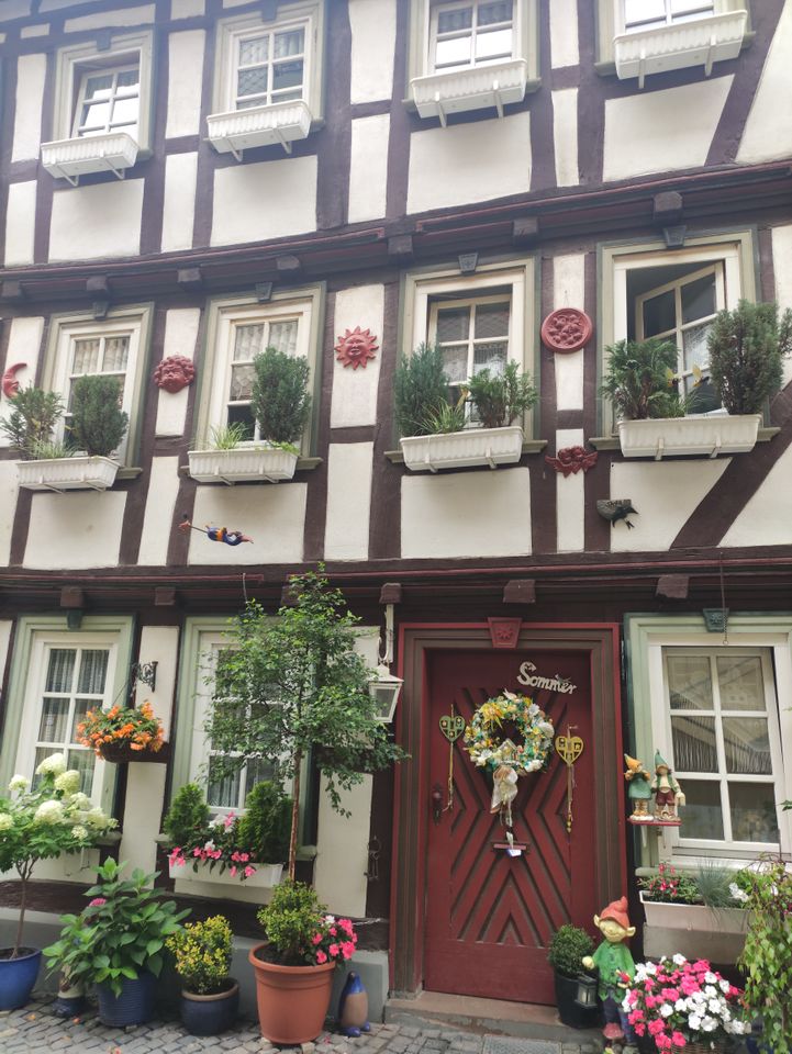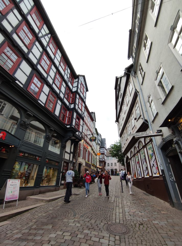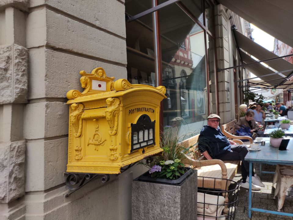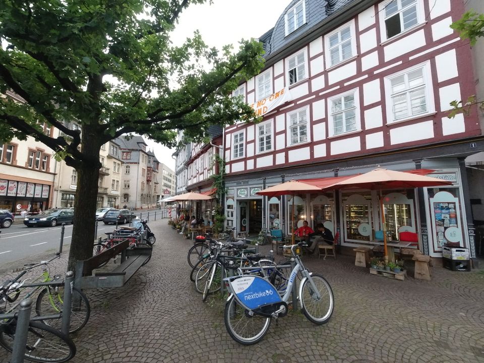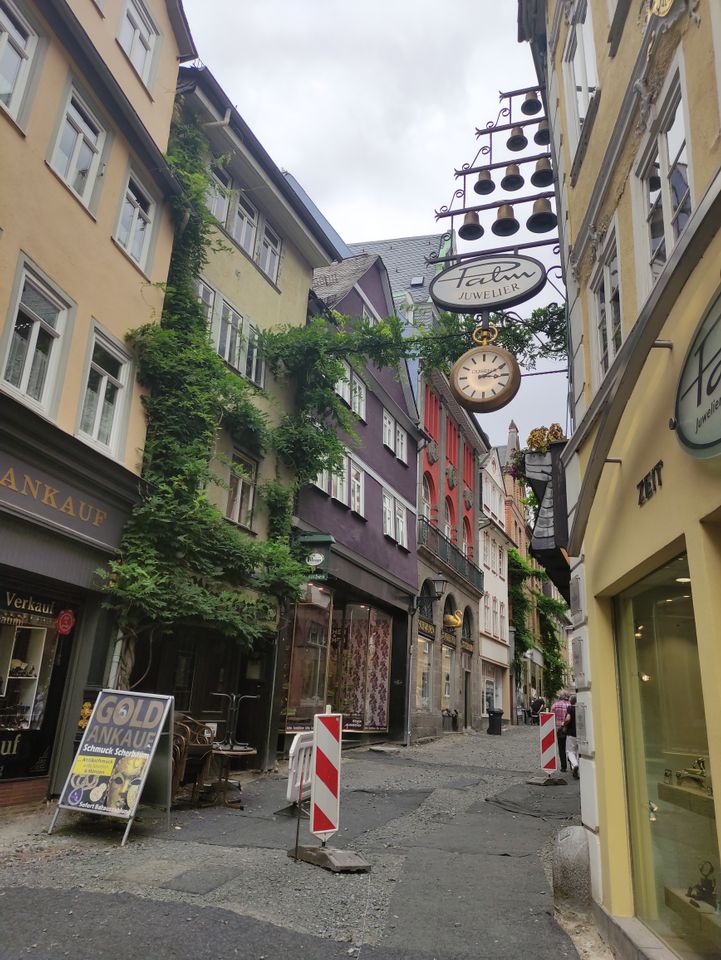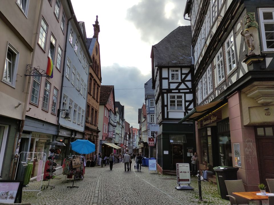 Wetzlar war mir irgendein Begriff. Dann sah ich, dass dort Leica den Firmensitz hat. Ich fuhr hier mit dem Bus Richtung Altstadt und machte erst mal Mittagessen. Ein paar normale Bratnudeln mit Hühnchen gingen gut. Ich legte wieder eine Runde hin – um die 40′, wobei es hier ein paar Straßen doppelt gab. Beim Lottehaus, in dem Goethe wohl seine Muse besuchte, war’s nett. Zu Fuß zurück zum Bahnhof wurde mir als beste Route angegeben. Ich hatte inzwischen einige Kilometer in den Schenkeln. Bei Müller tauschte ich mal meine Limoflasche, die ich seit Salzburg immer wieder auffülle, in eine neue ein.