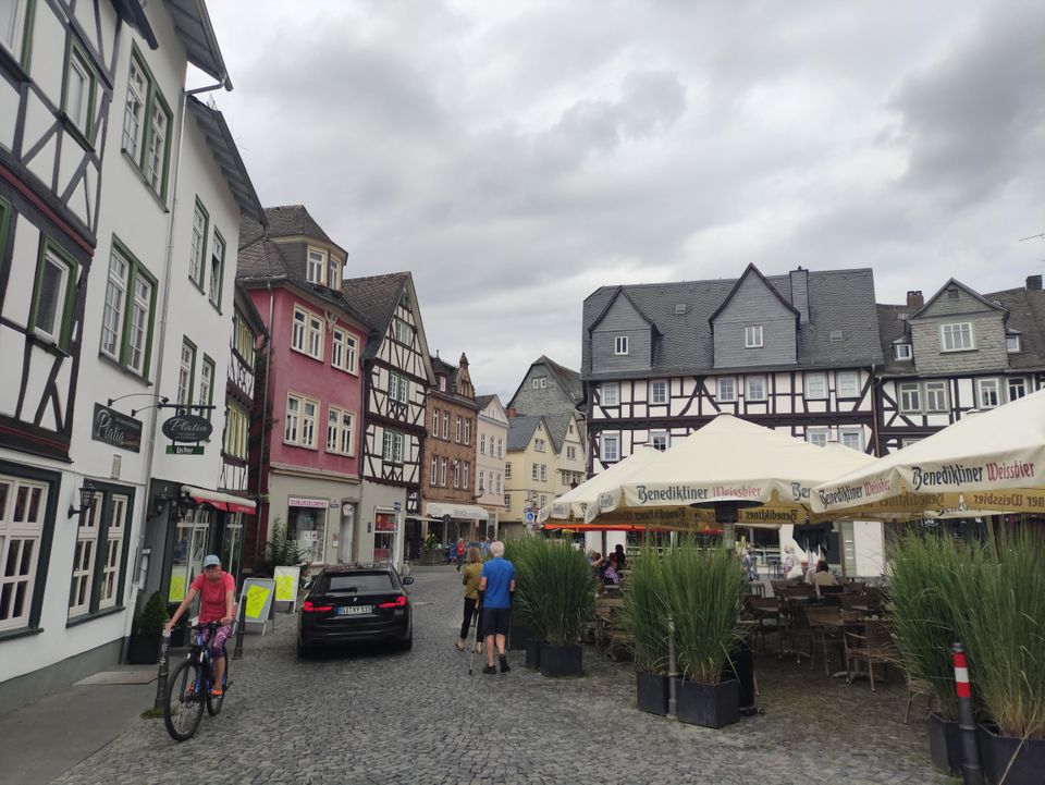 In Limburg ging ich zunächst vom Bahnhof in die Altstadt. Ein Dom dort war der ideale Startpunkt für den ersten Spaziergang. Ich drehte meine Runde durch die Altstadt mit vielen Fackwerkhäusern. Am Ende kamen 45′ zusammen, rechtzeitig vor meinem Zug nach Weilburg. Hätte ich den verpasst, wäre der nächste auch erst eine Stunde später los.