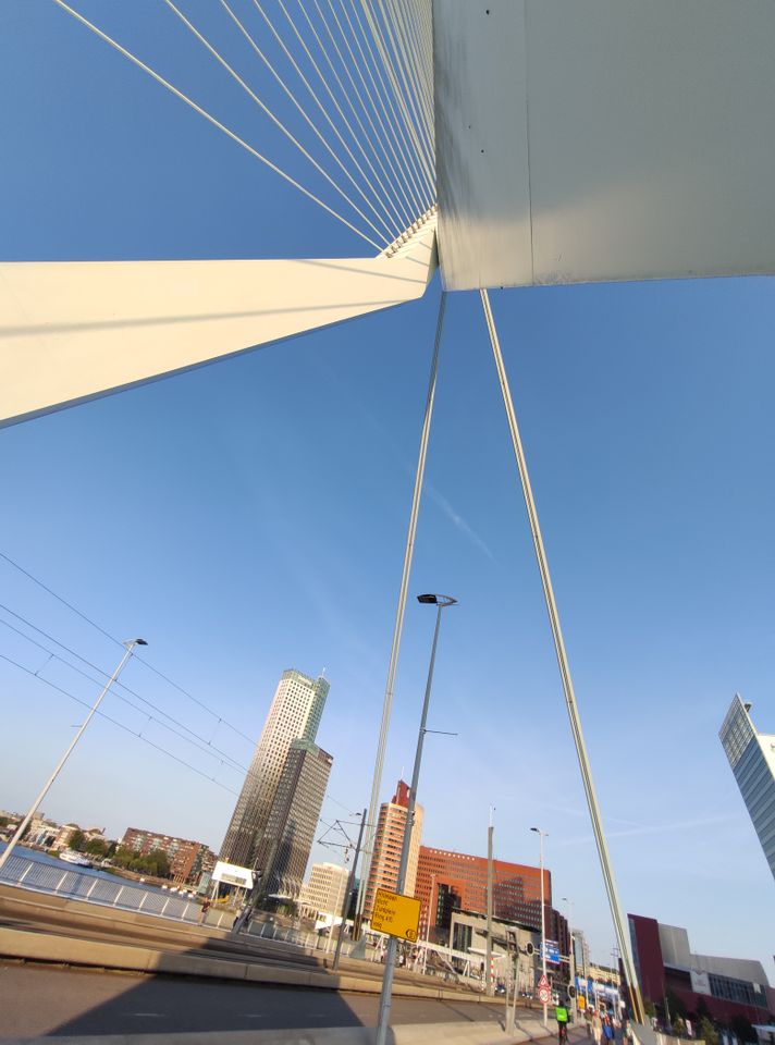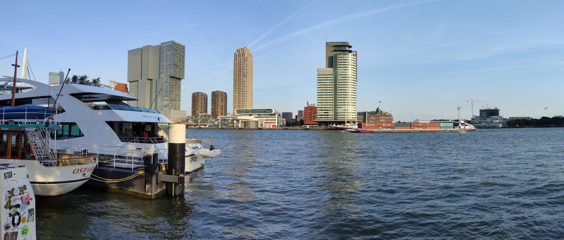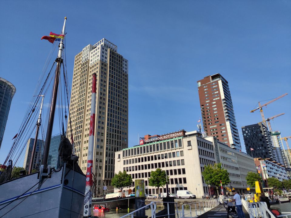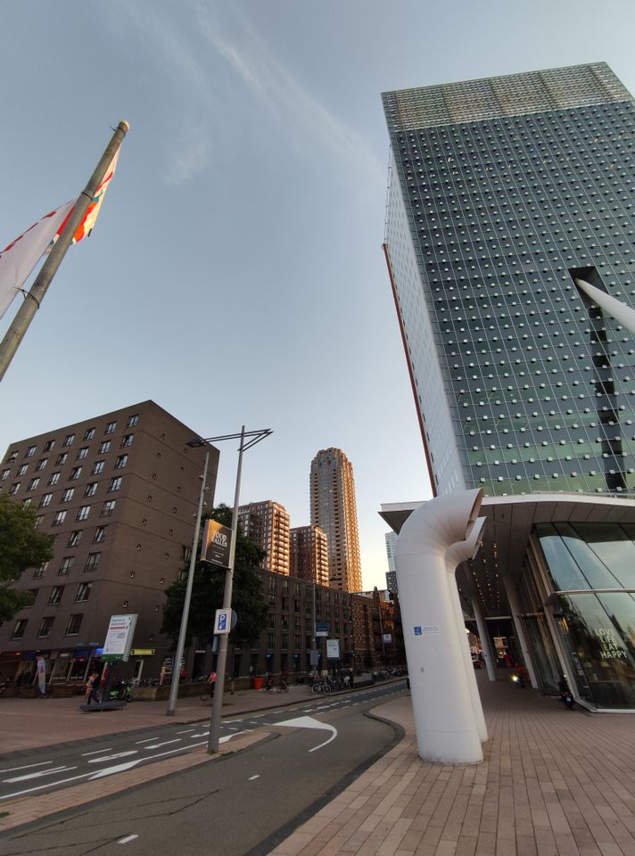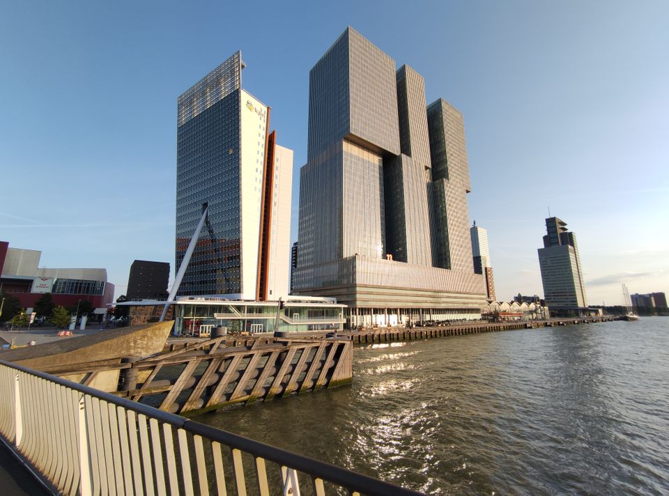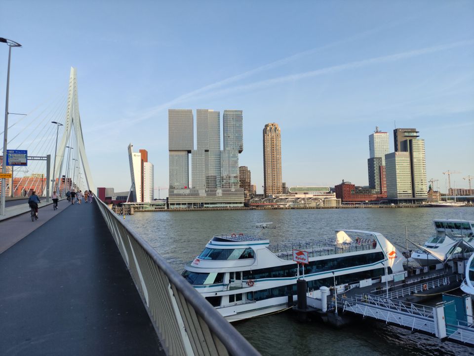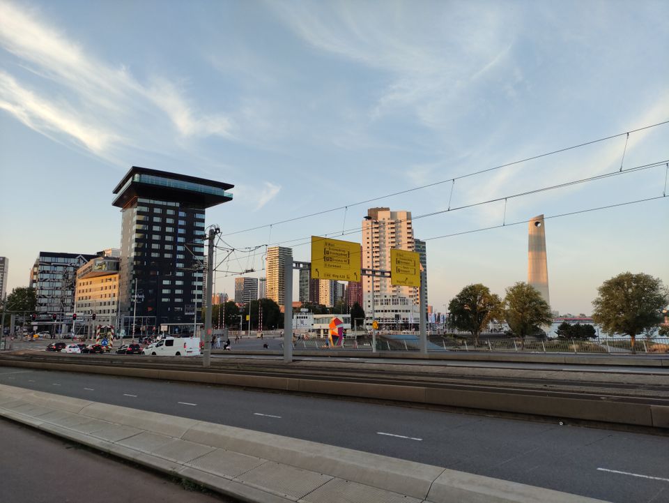 Dieses Mal startete ich von der Witte de Withstraat, die nicht weit weg war. Es ging kreuz und quer durch die Stadt, zum Veerhaven und schließlich über die Erasmusbrücke zum Hotel New York.