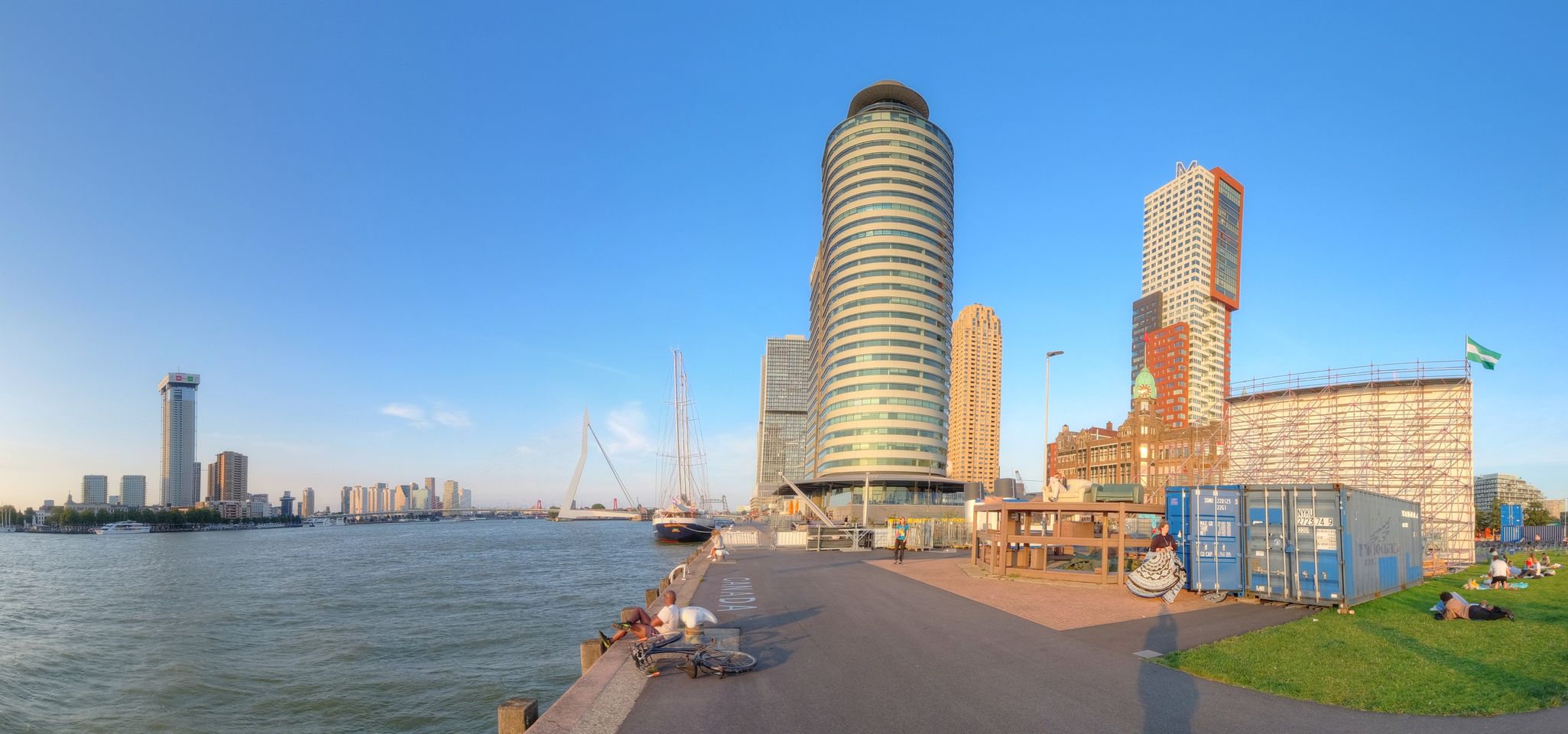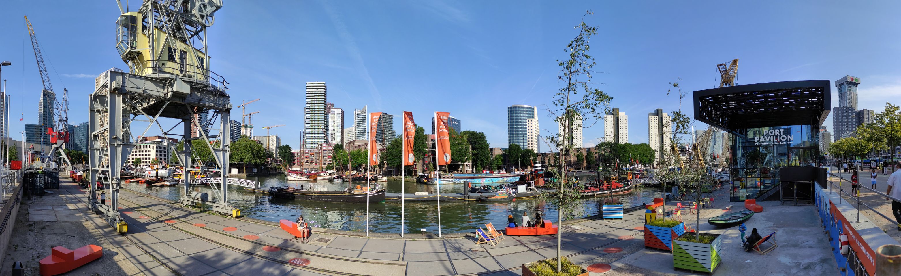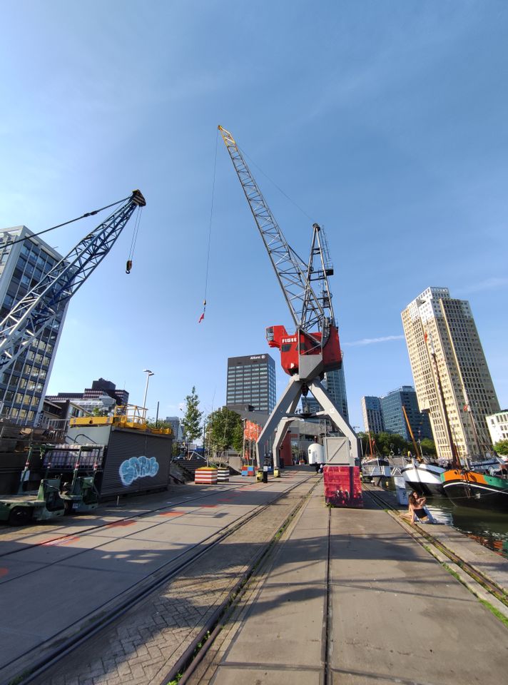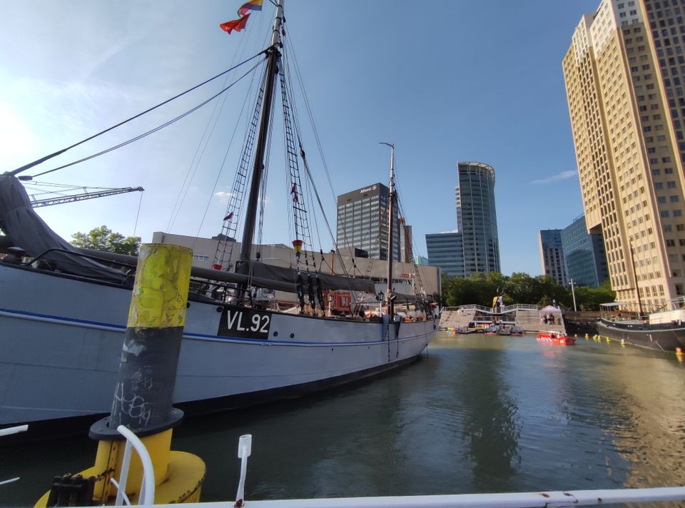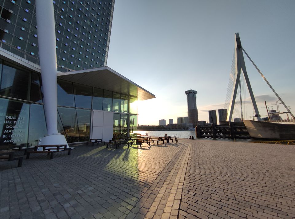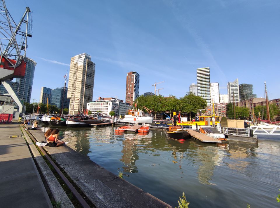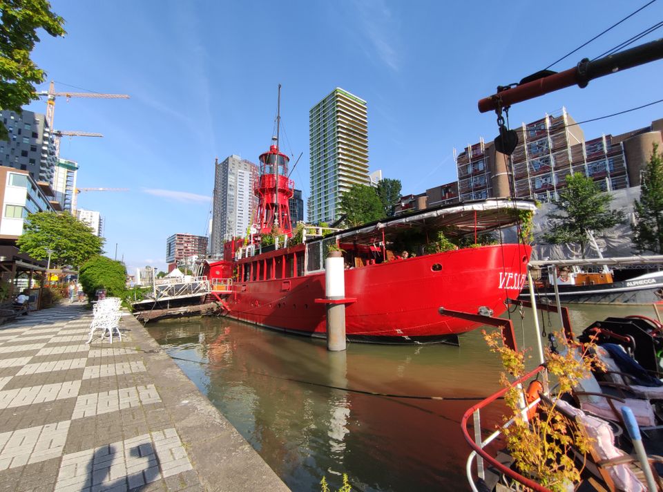Dieses Mal startete ich von der Witte de Withstraat, die nicht weit weg war. Es ging kreuz und quer durch die Stadt, zum Veerhaven und schließlich über die Erasmusbrücke zum Hotel New York.