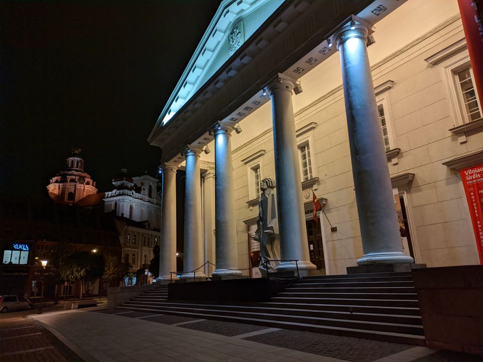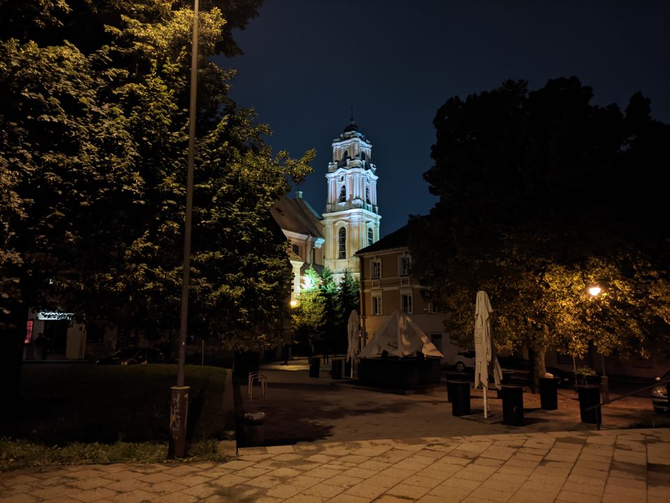 Recht zufrieden dann im Zimmer wieder. Ähnliches Abendessen und in der Nacht nur noch eine Spazierrunde durch die Gegend. Ich riskierte nicht nochmal ein Bier und war auch so genug müde. Zu kurz in Vilnius, lange genug aber für 3 Videos.