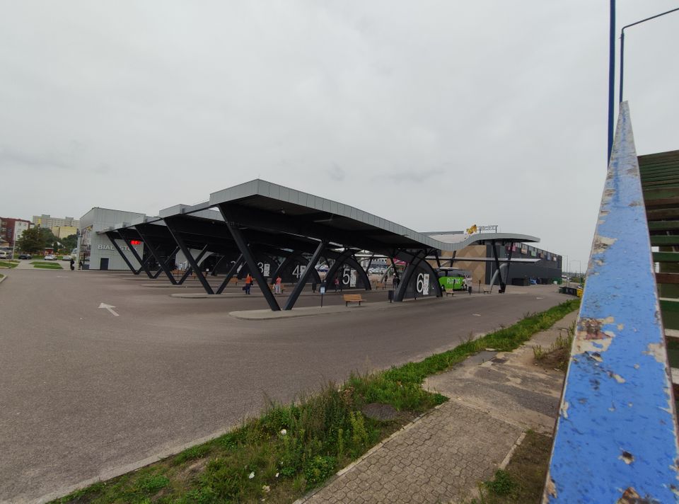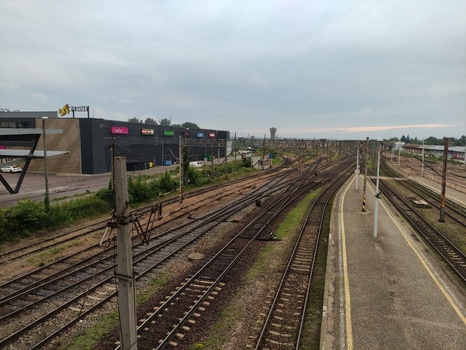 Ich kam ziemlich pünktlich in Bialystok an. Über eine Brücke ging’s zur Bahnhofseite. Es wird viel gebaut hier.
