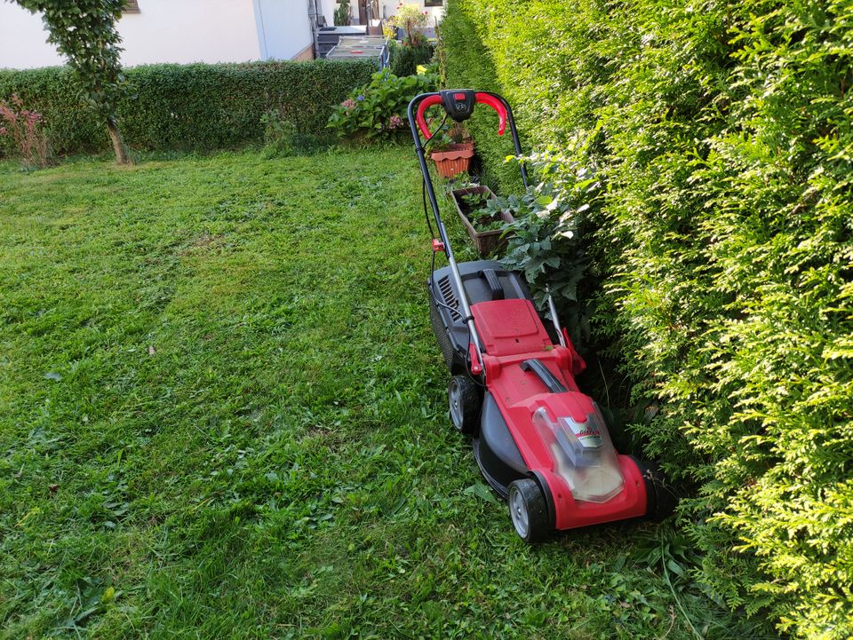 Ich mähte den Rasen, was eine Menge Arbeit machte. Ich kam in Schwitzen und die Biotonne wurde voll. Der Briefträger brachte zwischendurch das Amazon-Paket mit meinen Warehouse Sachen.