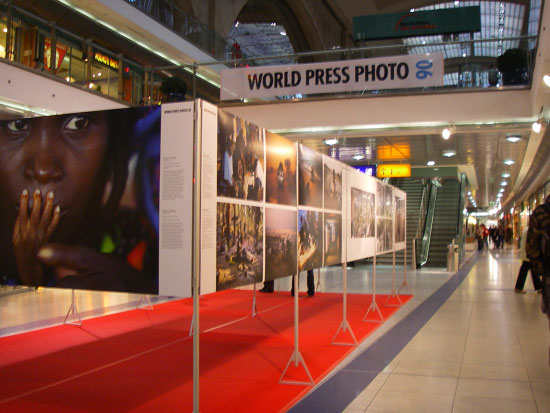 Dort auf dem Hauptbahnhof versuchte ich bei Saturn ein iPod USB-Ladekabel zu ergattern. Nicht da. Aufm Bahnhof standen ein paar Bilderwände zum „World Press Photo 06“. Die meist traurigen Bilder schaute ich mir an. Dann noch ein Sushi + grünem Tee zum Frühstück und in den ICE nach Frankfurt Flughafen.