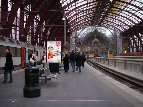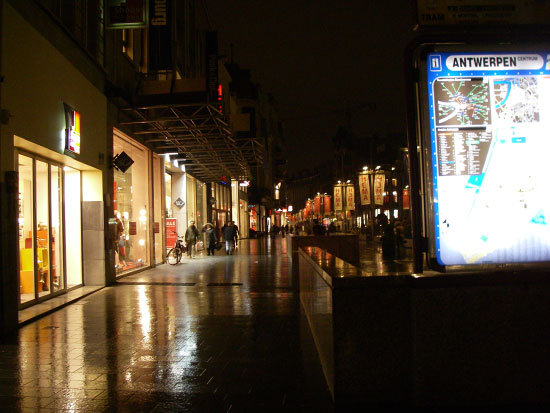 Das Ticket ach Antwerpen kostete €6. Ein Zug stand noch verspätet aufm Bahnsteig doch der wollte die Türen nicht mehr öffnen. Da warteten auch andere Leute, 5 Minuten später kam schon wieder einer. Die Fahrt in den Norden dauerte auch keine Stunde. Da war ich nun, suchte mir schließlich die richtige Straßenbahn und fuhr die paar Stationen. Dann runter auf der Nationaalstr. fand ich auch gleich das Hotel. Einchecken ins Zimmer. Alles problemlos. Das Zimmer ist winzig und eben das, was man gerade so von einem 2 Sterne Laden erwarten kann. Kurz an den Mac – kein offenes WLAN.