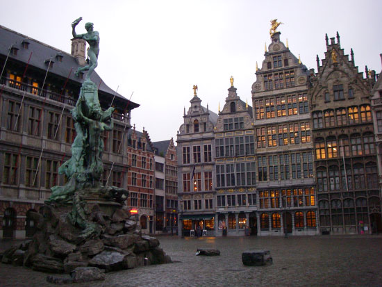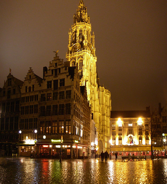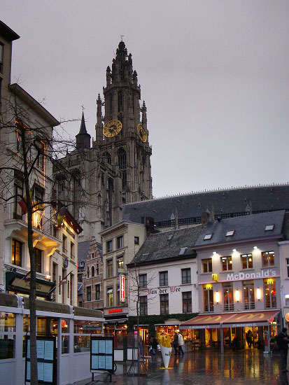 Erst ’ne Dusche, dann legte ich mich ’ne Stunde aufs Ohr und machte nach 4 los. Hier in Hotelnähe waren alle Sehenswürdigkeiten ein paar Minuten zu Fuß entfernt. Die Kathedrale, der Markplatz. Es sieht Brüssel ähnlich. Das war und ist hier auch eine reiche Stadt. Man merkt aber deutlich Flandern, es wird niederlädisch gesprochen.
