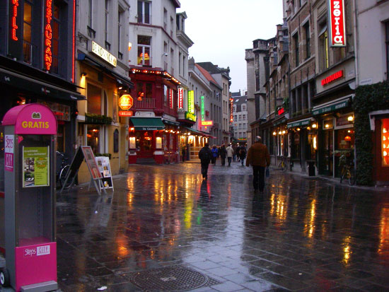 Ich lief wieder zurück zum Hotel und wollte dann natürlich ausgehen. 0:40 war ich soweit. Gleich vorn am Groenplaats nahm ich ein Taxi zum „Café d’Anvers“ (€9 gegeben). Der Club war im Rotlichtbezirk doch als ich dann drinnen war – wow! Super Location mit alten Mauern und leuchtendem Dancefloor. Ganz „normal“ und cool. Eine Menge Leute tanzten schon. Kein Eintritt – nur nen € für die Garderobe.