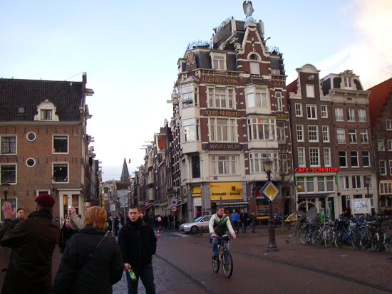 Ich legte mich erst mal ein paar Minuten aufs Ohr. Mit dem DS kann man kostenlos T-Mobile Hotspots nutzen. Am Fenster im Hostel empfange ich einen. So schaute ich mir den Wikitravel Eintrag zu Amsterdam an und checkte emails. Leider werden keine Passwort/Cookie Daten gespeichert. Jedes Mal neu einloggen.