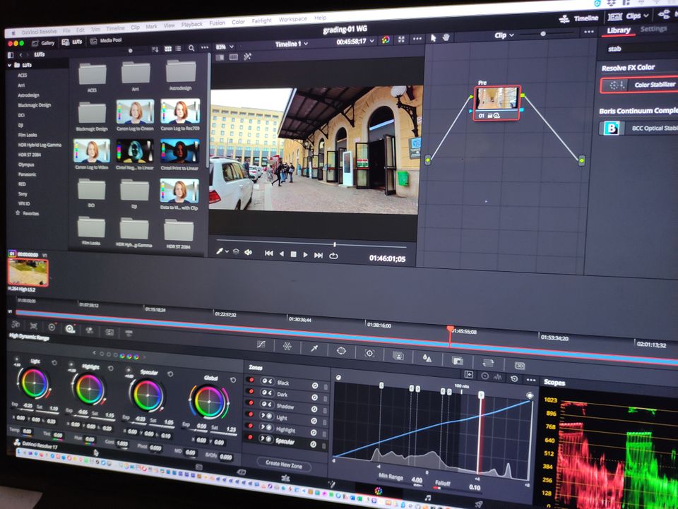Der Dell werkelte den zweiten Tag an den Panos. Langsam aber sicher wurden alle Bilder etwas aufgefrischt. Ich setzte mich an DaVinci resolve und versuchte mich im Grading der D-Cinelike Clips.